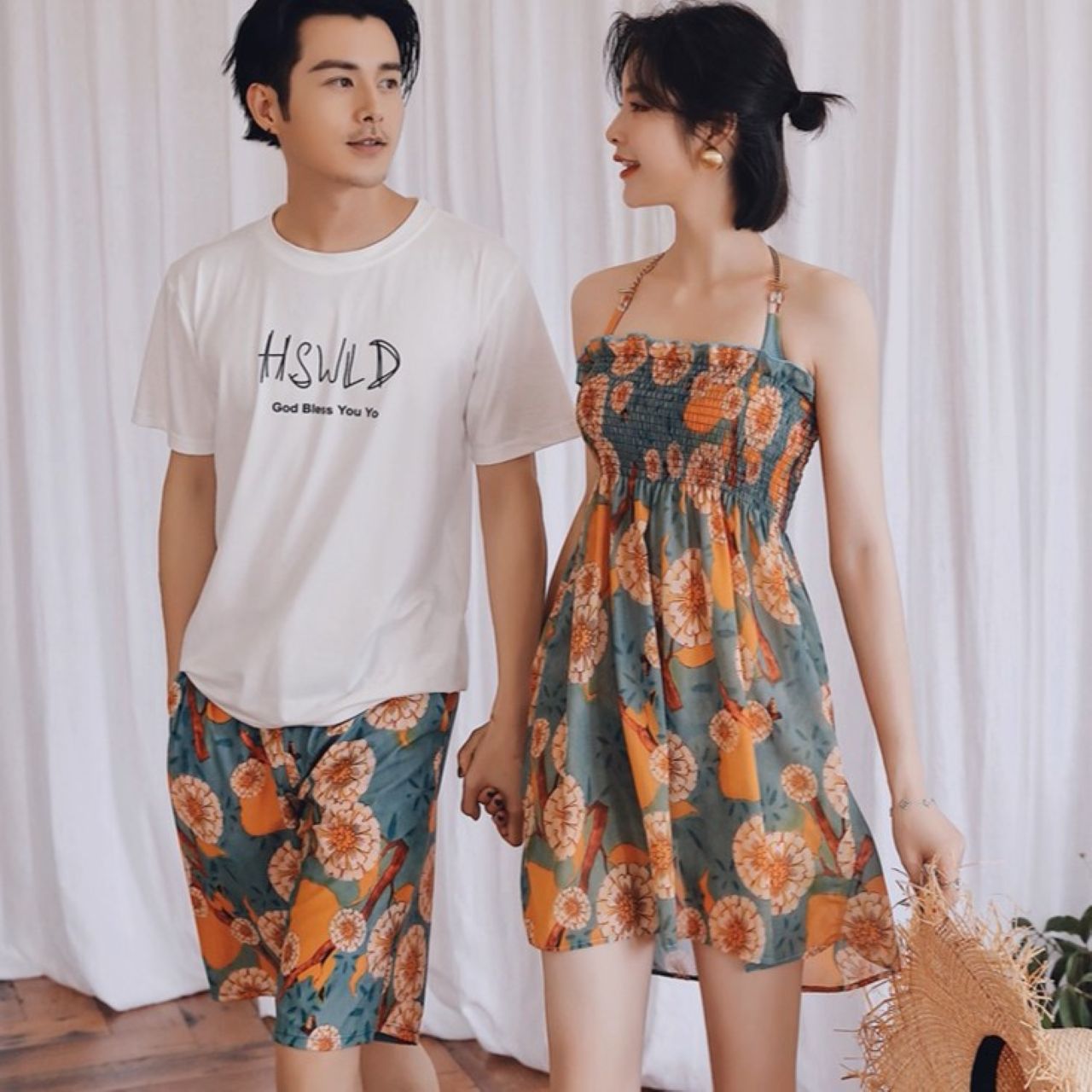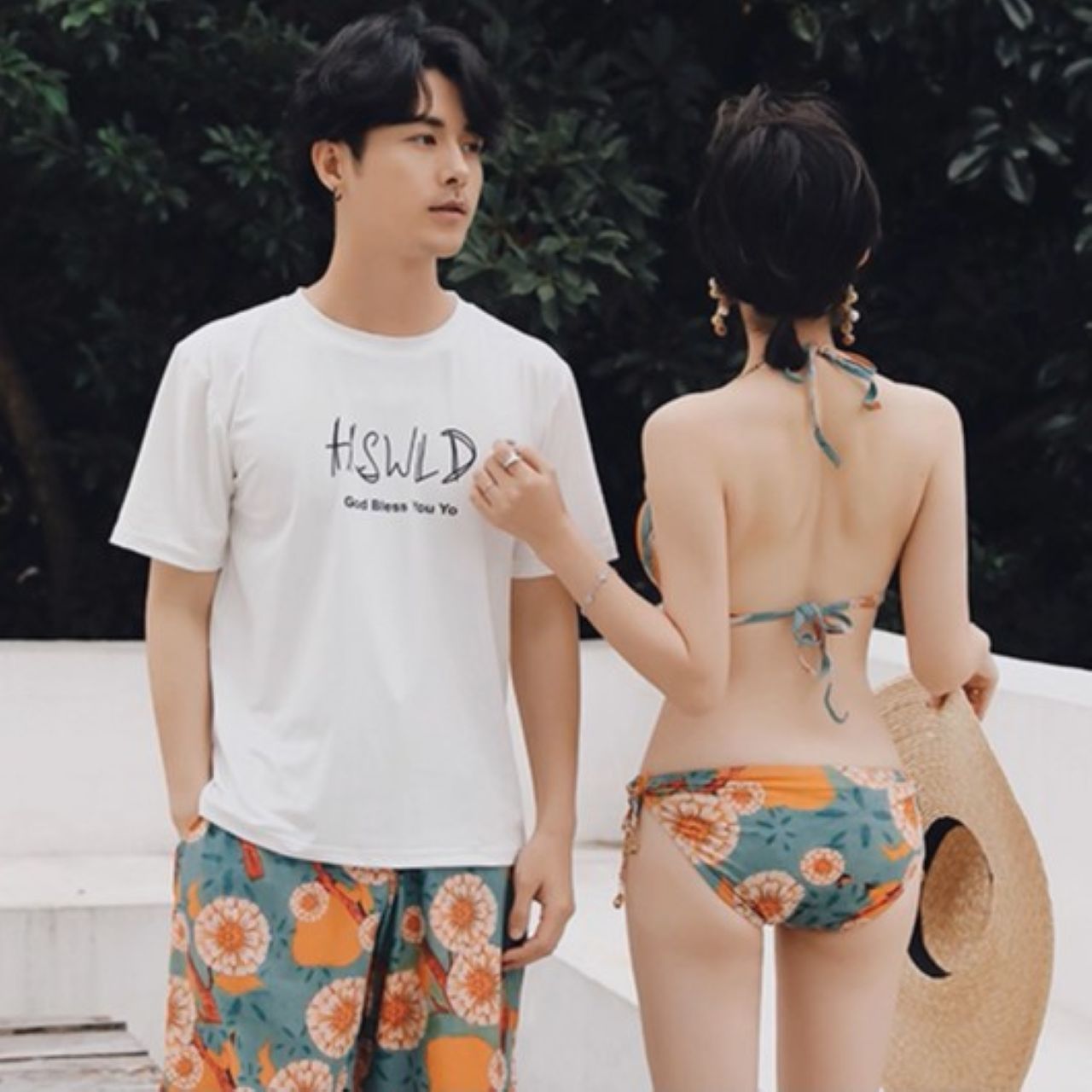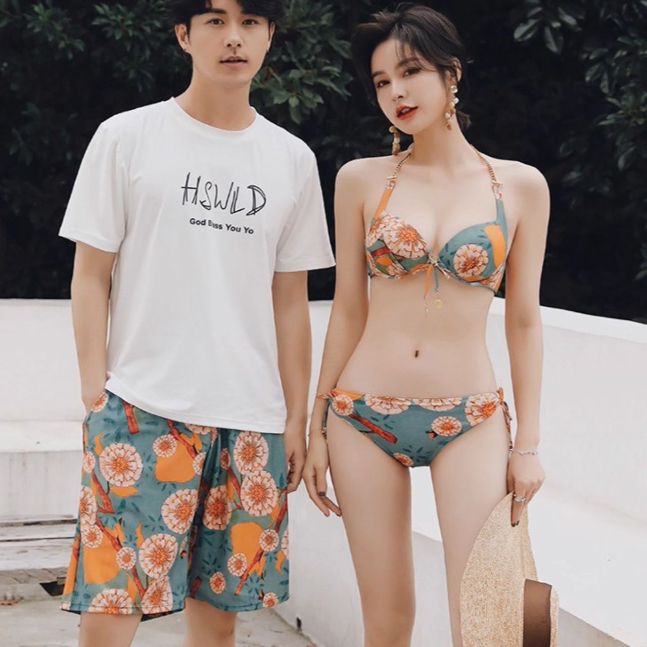 華やかな花柄が映えるペアルック水着セットです。甘すぎない上品なデザインで、大人のカップルにぴったり。リンクコーデとしてさりげなくおそろいを楽しめるうえ、スタイルアップ効果も抜群です。この夏は二人でおしゃれにリンクしながら、思い出をより鮮やかに残せます。