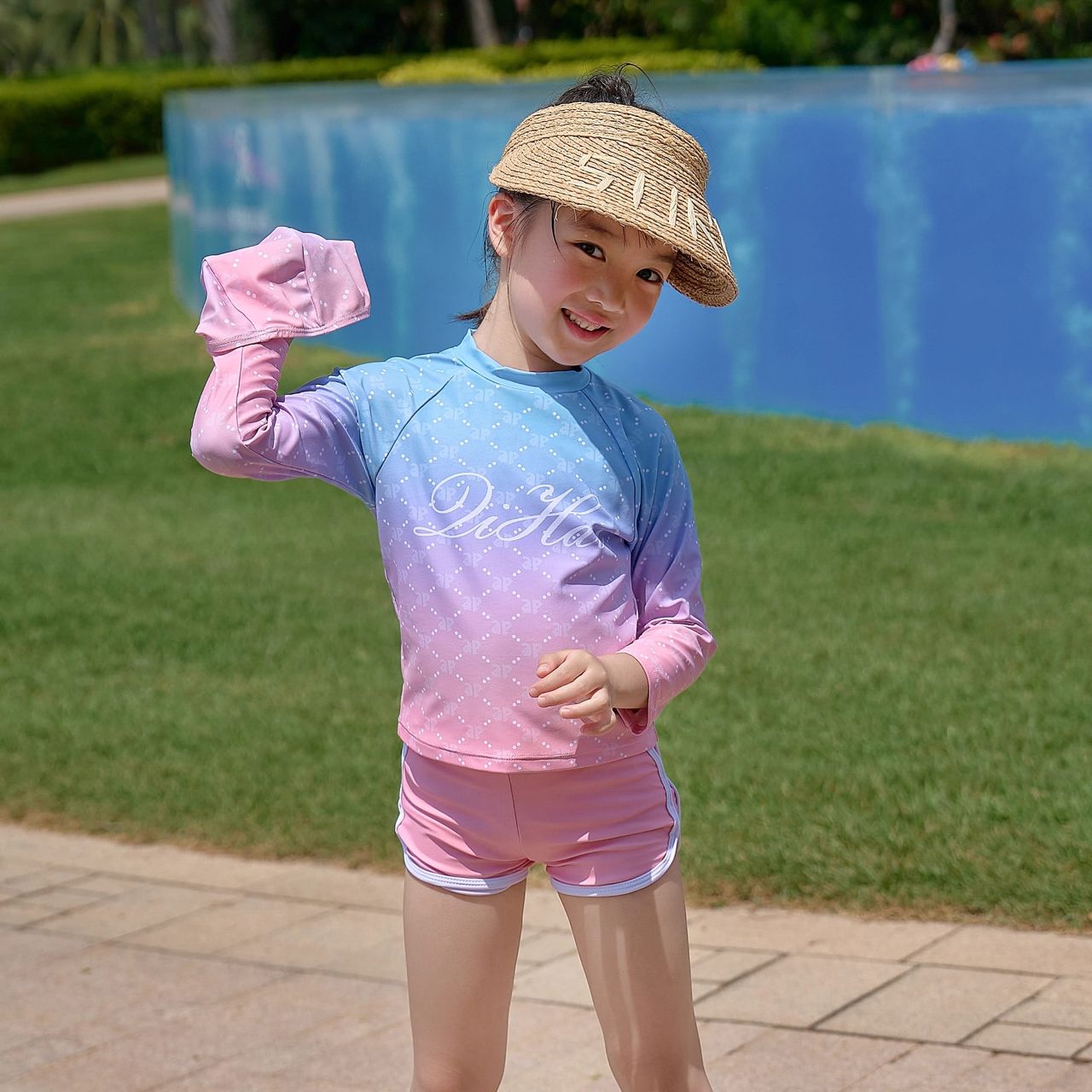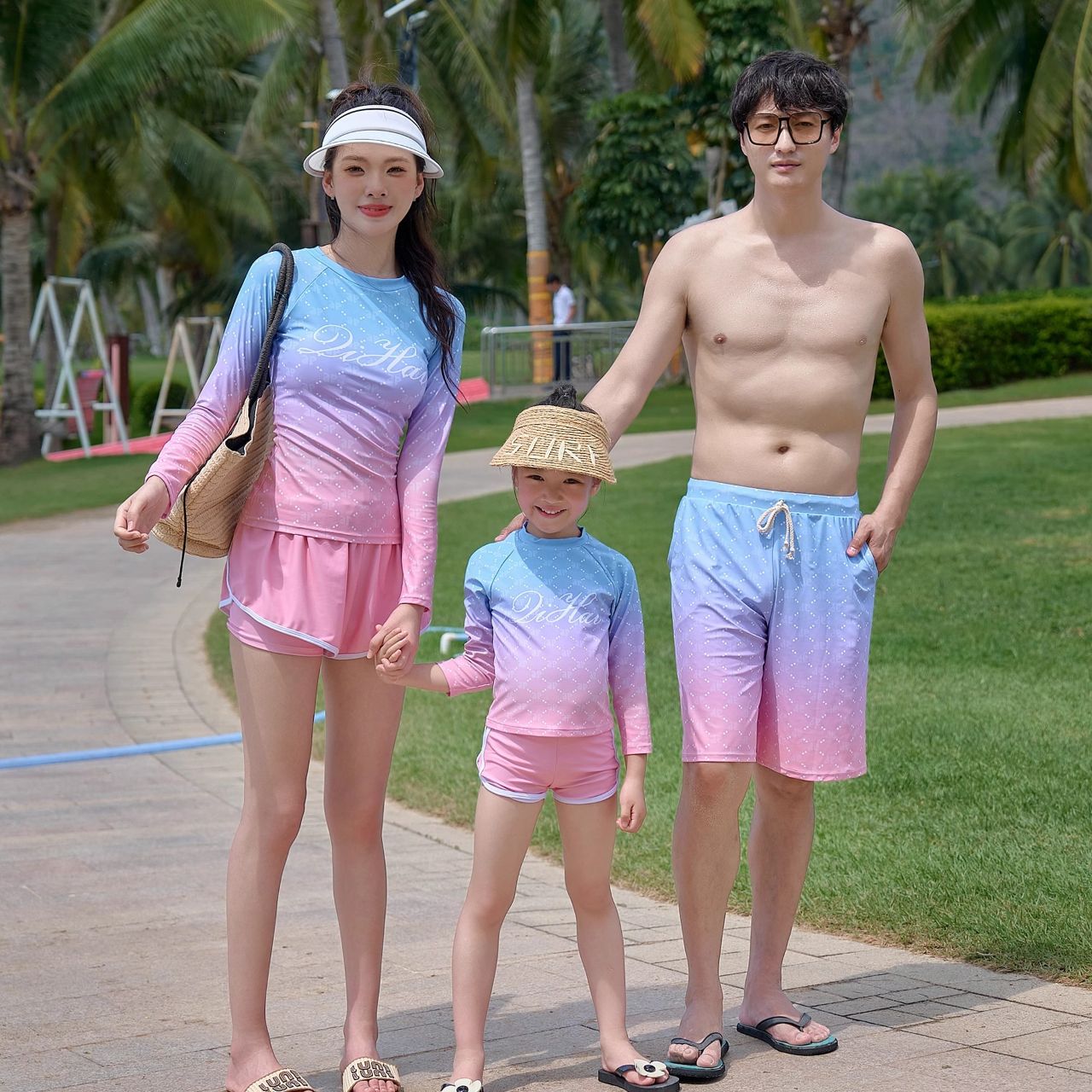 光をまとうようなパステルカラーのグラデーションが美しい親子ペアルック長袖水着。家族でお揃いを楽しめ、ビーチやプールでおしゃれと安心を両立。肌ざわりの良い上質素材で通気性抜群、長袖仕様で日差しからも守り、一日中快適に過ごせます。