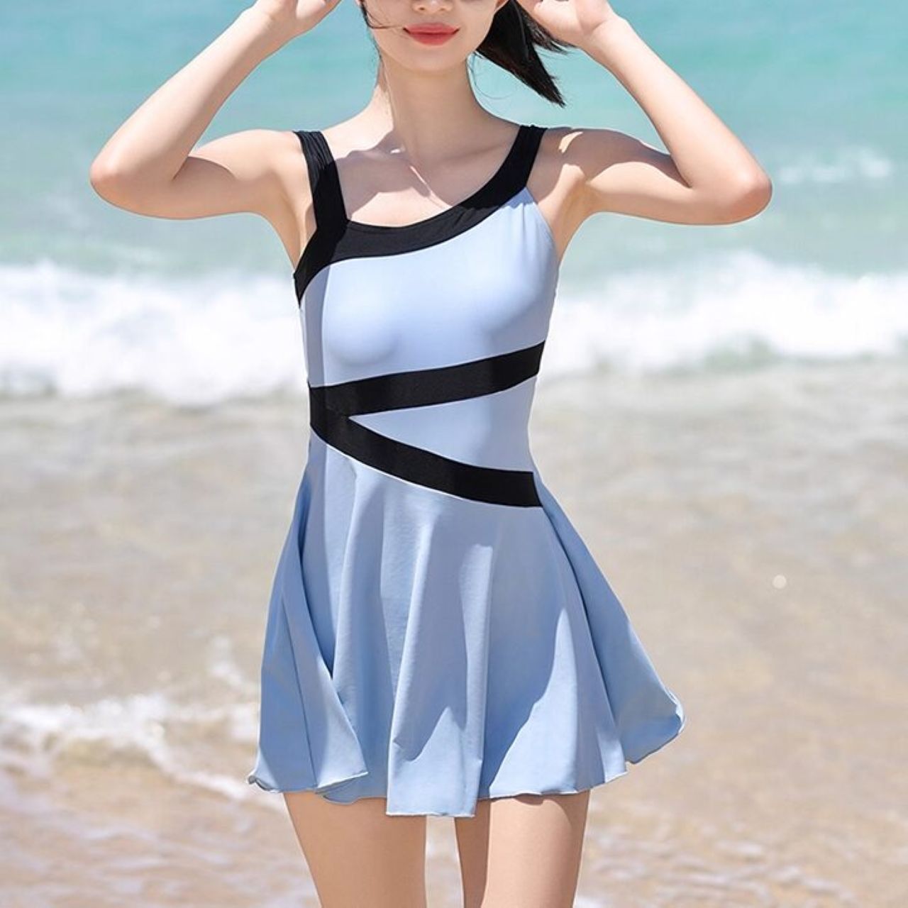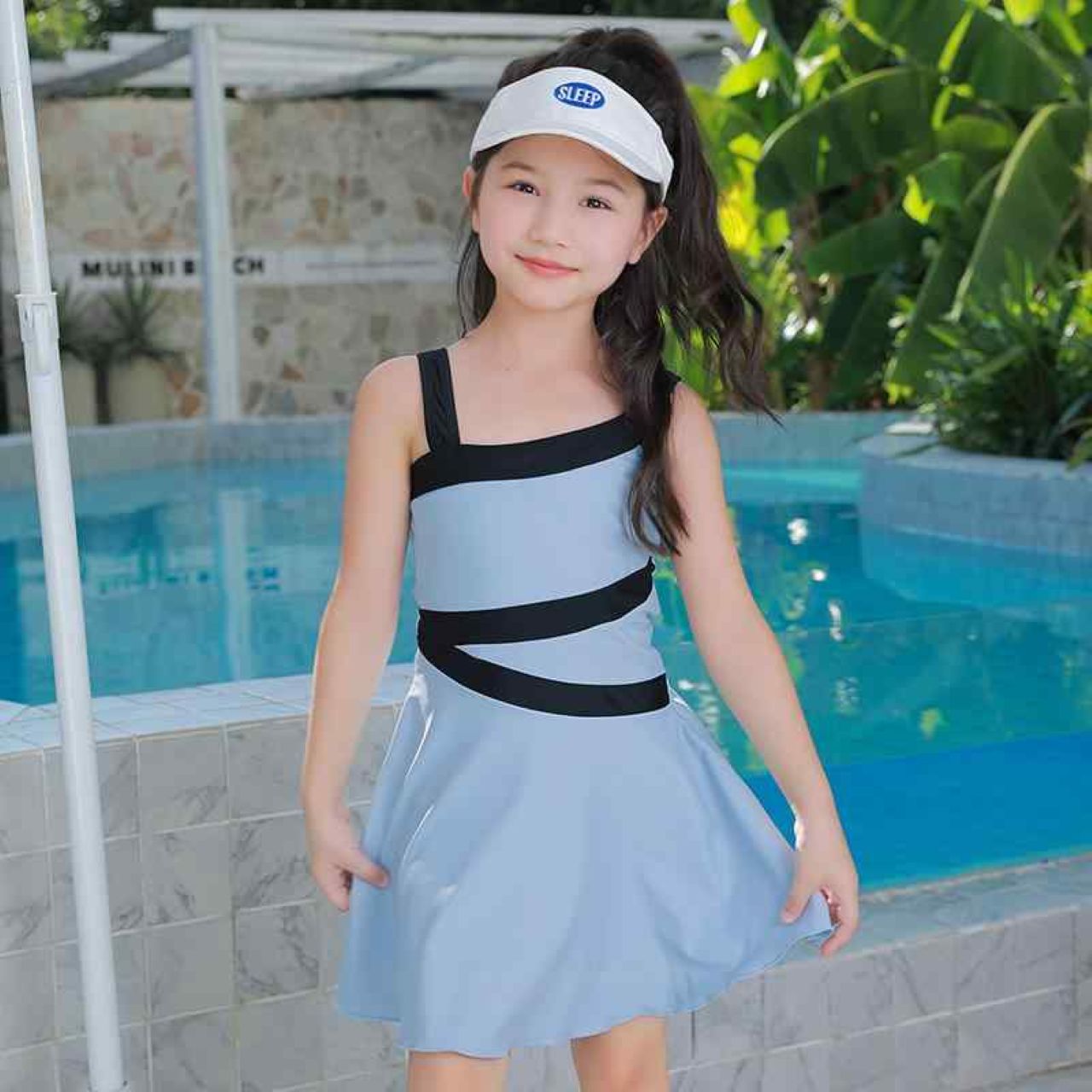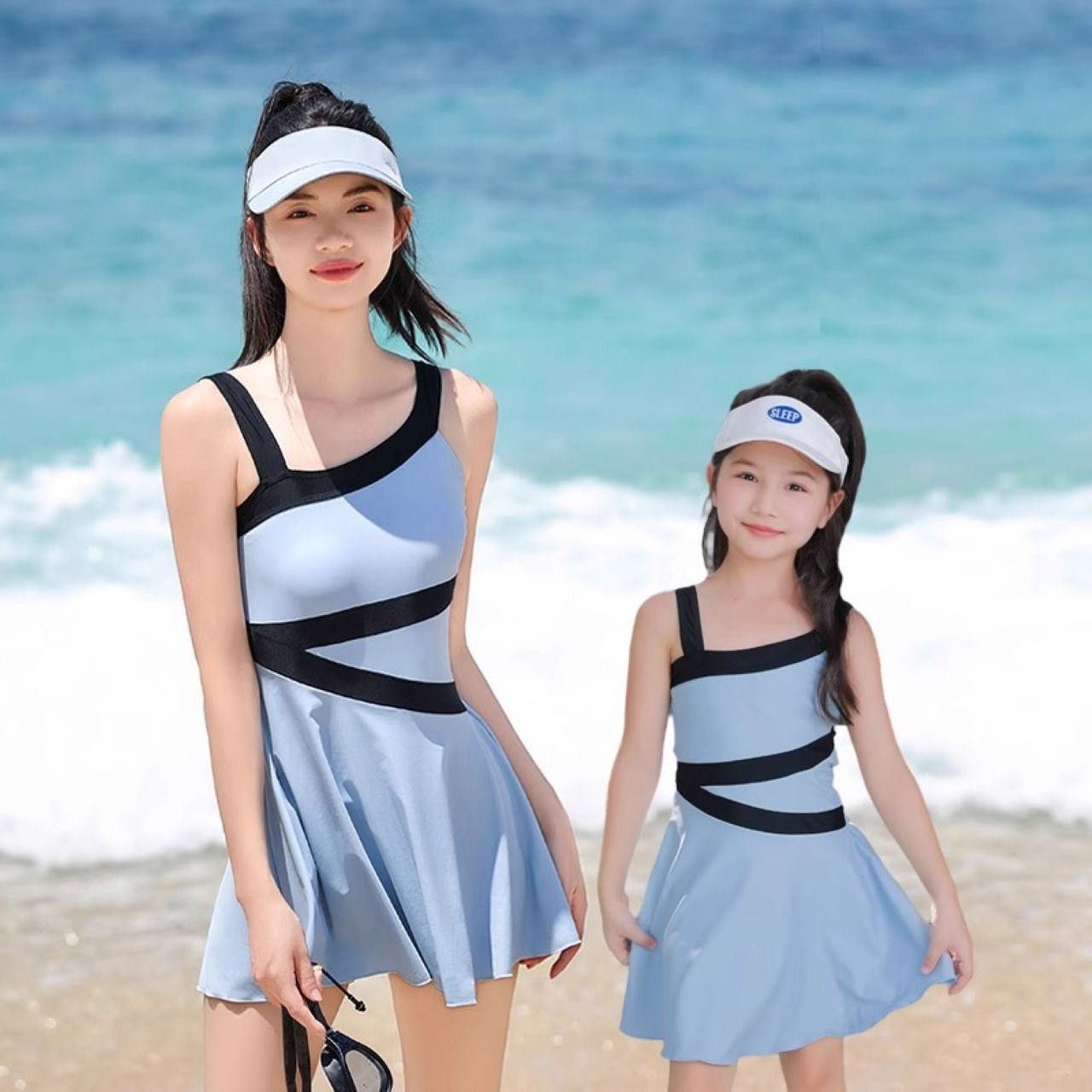 スポーティな配色ラインとバイカラーが映える親子ワンピース水着。母娘リンクコーデで自然な可愛さを演出。柔らかく通気性の良い素材で快適に過ごせ、動きやすさも抜群。鮮やかなカラーとトレンド感で夏のレジャーを華やかに彩ります。