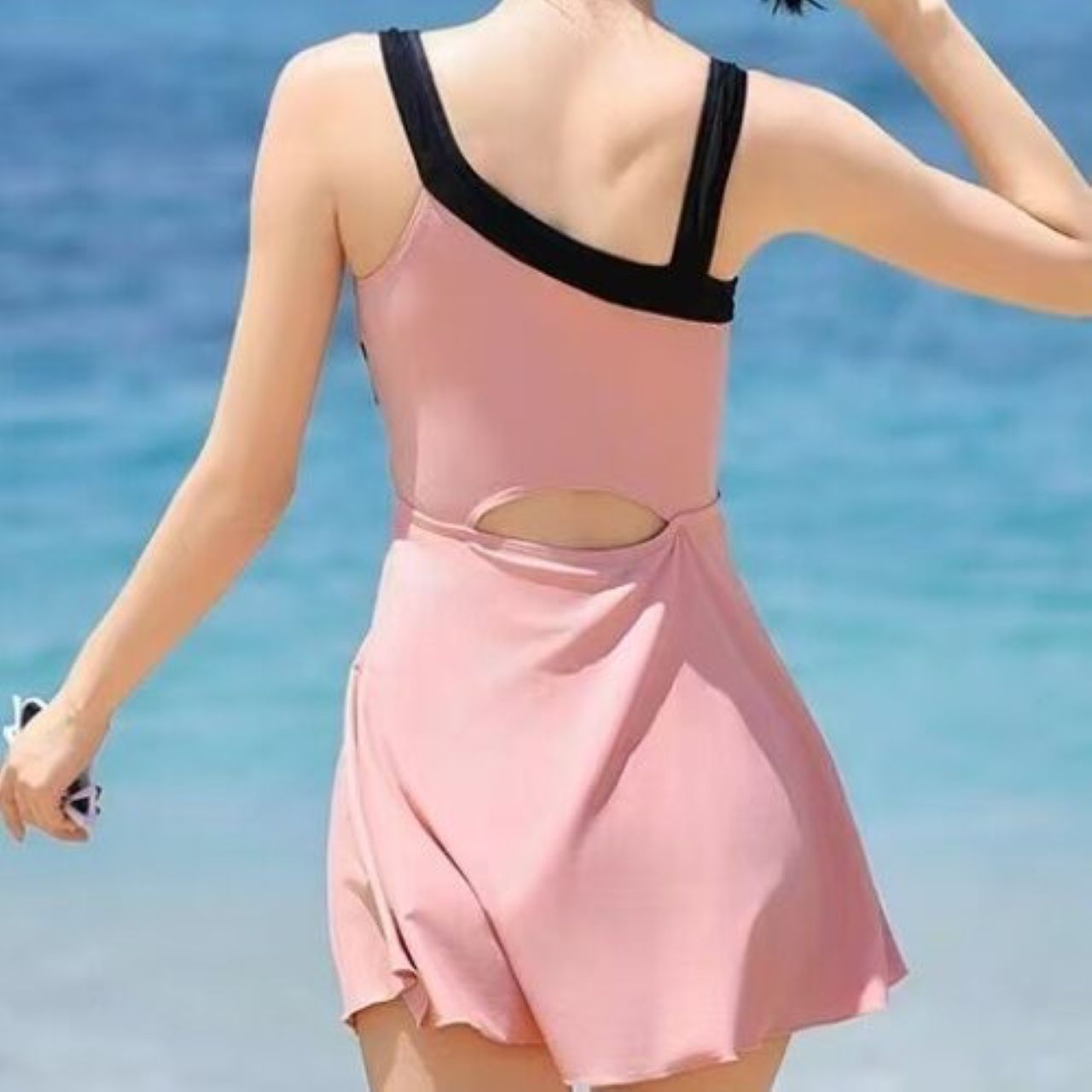 親子ペアルック 配色ライン ワンピース水着