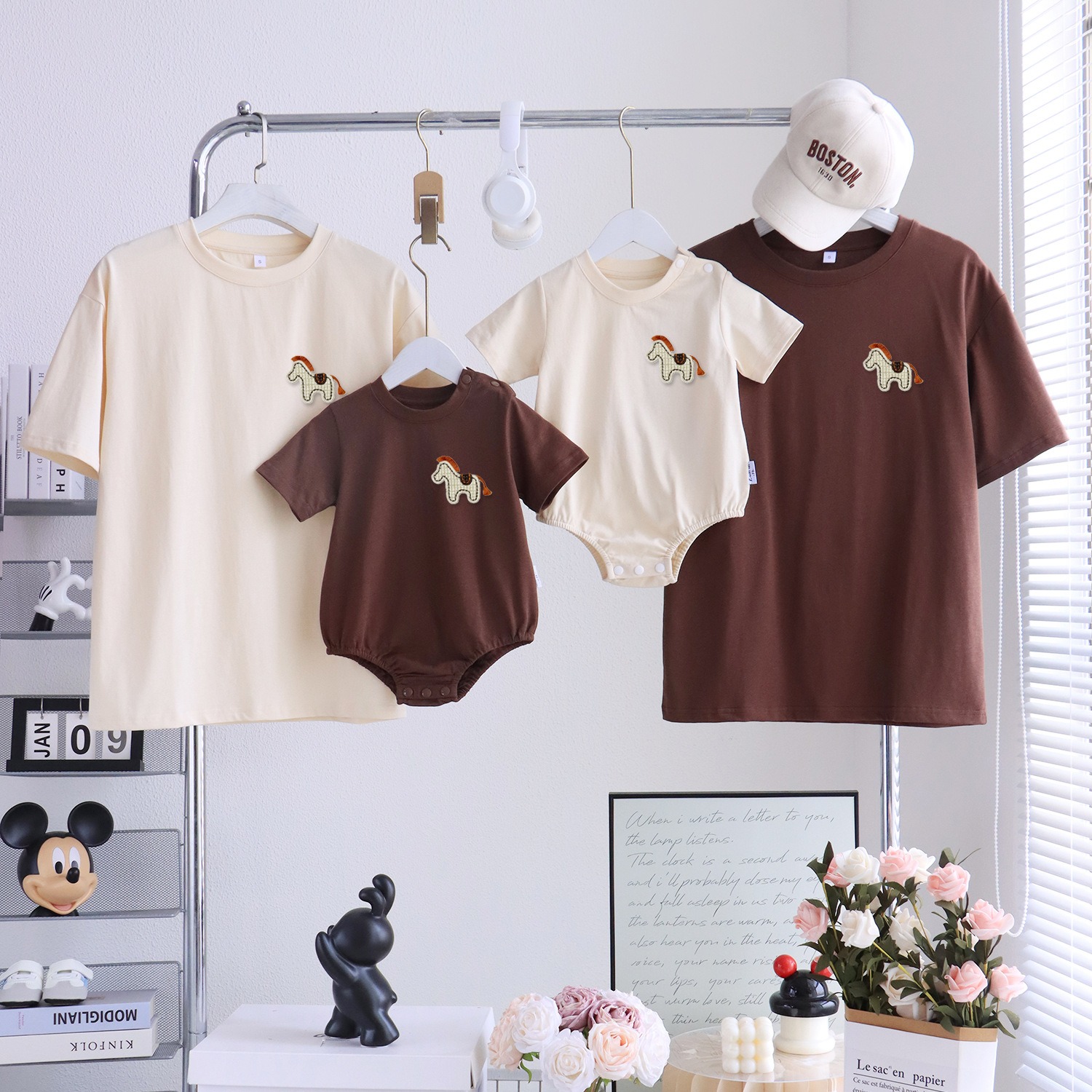 親子ペアルック ほっこり木馬 ナチュラルTシャツ・ロンパース