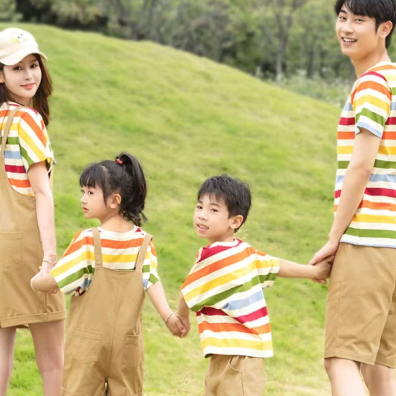 カラフルなボーダー柄が目を引くTシャツは、胸元のハートワンポイントが可愛らしさを添えるデザインです。多彩なカラーリングで気分も明るく、着るだけで華やかな印象に。シンプルなボトムスと合わせればカジュアルに、トレンドアイテムと組み合わせればスタイリッシュで個性的なコーディネートを楽しめます。親子やパートナーとのリンクコーデにもおすすめです。