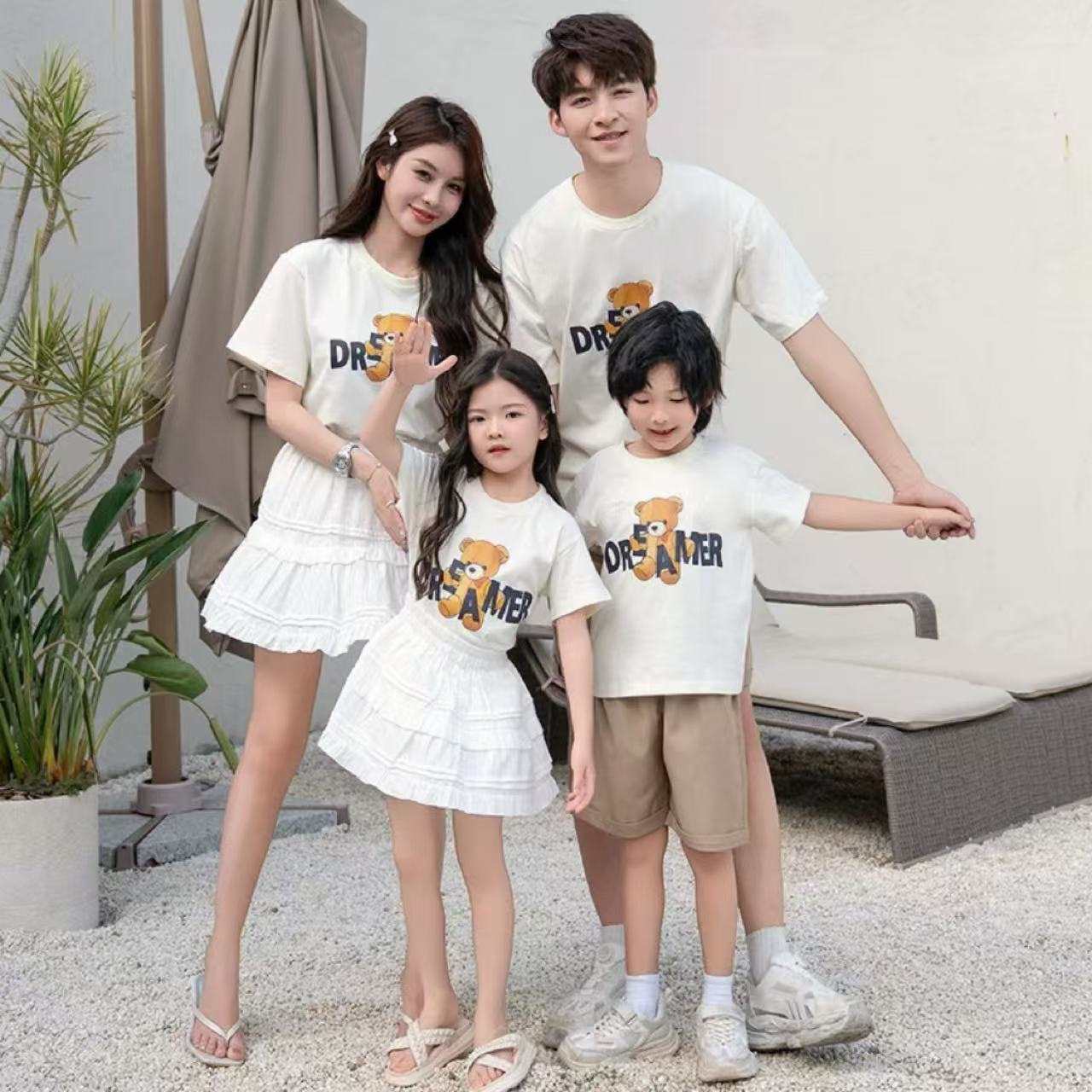 「親子ペアルック DREAMARベアーTシャツ」は、可愛らしいベアーのプリントが魅力のアイテムです。親子でお揃いにすれば、さりげなくオシャレなファミリーコーデを楽しめます。シンプルなボトムスとの相性も良く、カジュアルなスタイルに取り入れやすい一枚です。日常使いはもちろん、お出かけシーンにも活躍し、親子の時間をより楽しく演出してくれます。