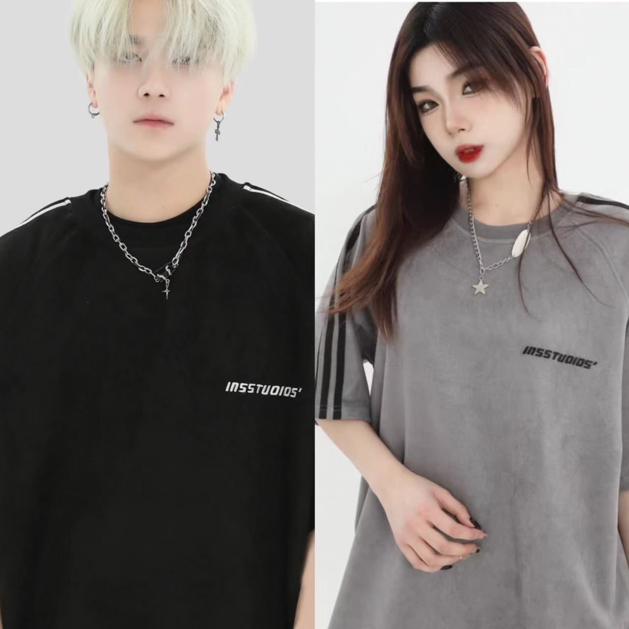 「INSstudios スエード調ショルダーライン半袖Tシャツ」は、スタイリッシュなデザインが魅力のペアルックアイテムです。独自のスエード調素材とショルダーラインが洗練された印象を与え、柔らかく快適な着心地を実現。ユニセックス仕様で男女問わず着用でき、日常からお出かけまで幅広く活躍します。シンプルながら存在感のあるデザインで、カジュアルコーデに上品なアクセントを加える一枚です。