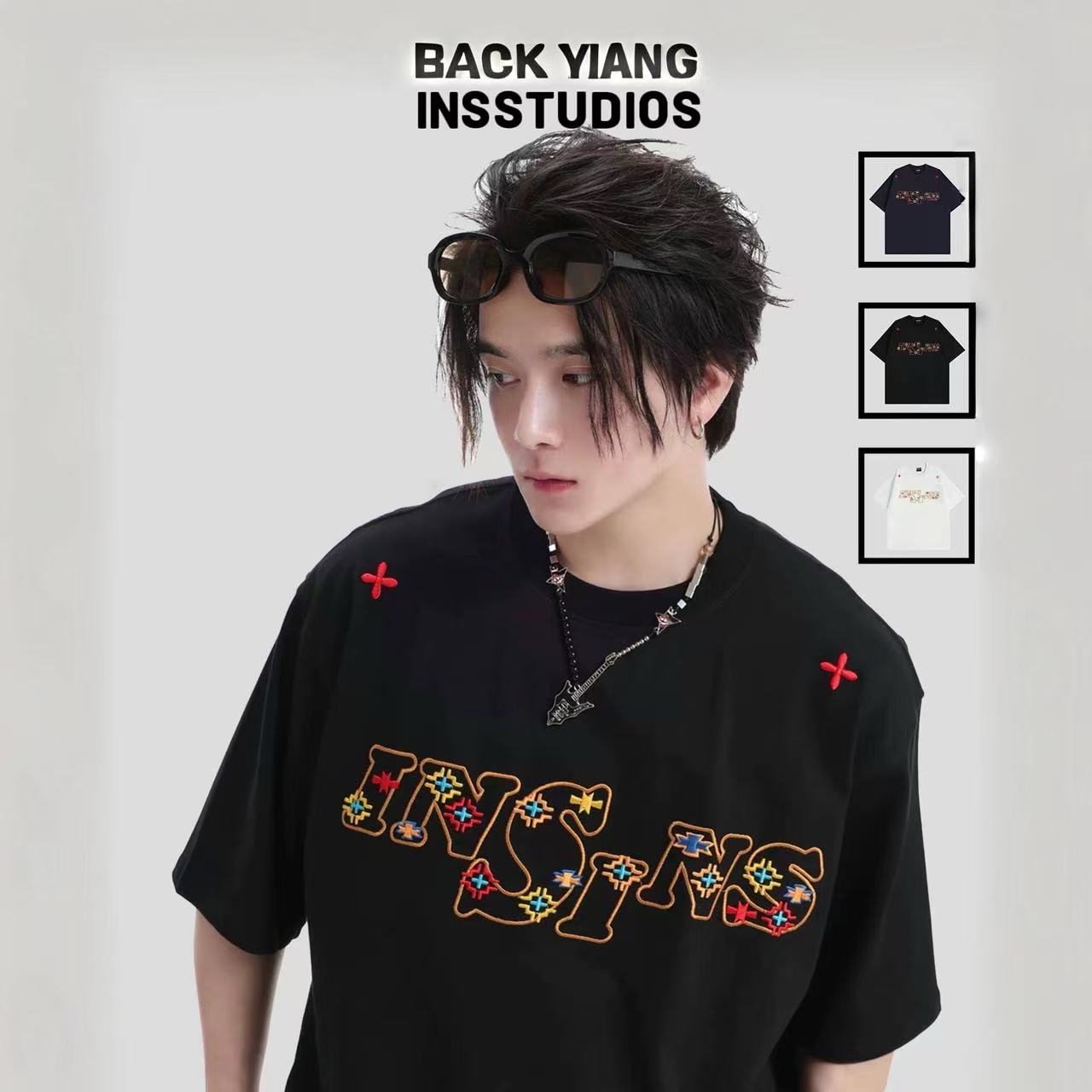 【INSstudios】 ヴィンテージ風 ロゴ刺繍 半袖Tシャツ 幾何学デザインは、個性的なデザインが魅力のペアルックアイテムです。大胆な幾何学刺繍ロゴが存在感を放ち、シンプルなコーデにも洗練されたアクセントを加えます。高品質なコットン素材を使用し、柔らかく快適な着心地を実現。ユニセックス仕様で男女問わず着用でき、ゆったりとしたシルエットがリラックス感を演出します。デイリーユースからお出かけまで幅広く活躍する一枚です。