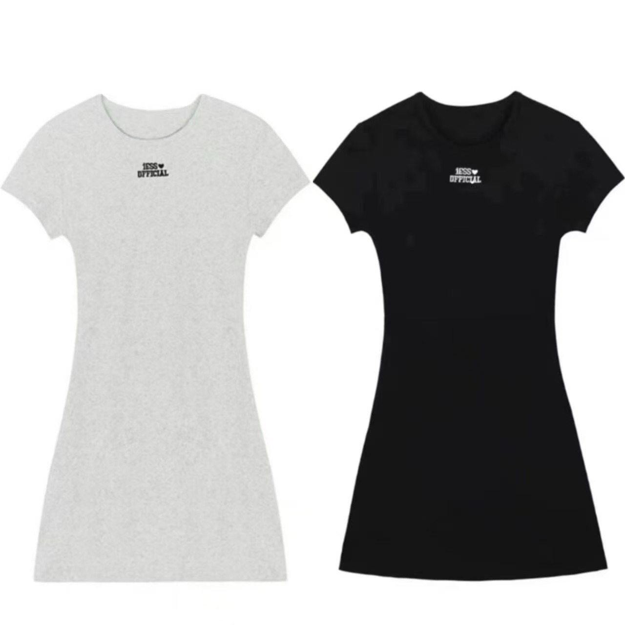 ペアルック ロゴ刺繍入り 韓国風Tシャツ フレンチミニワンピ-ス