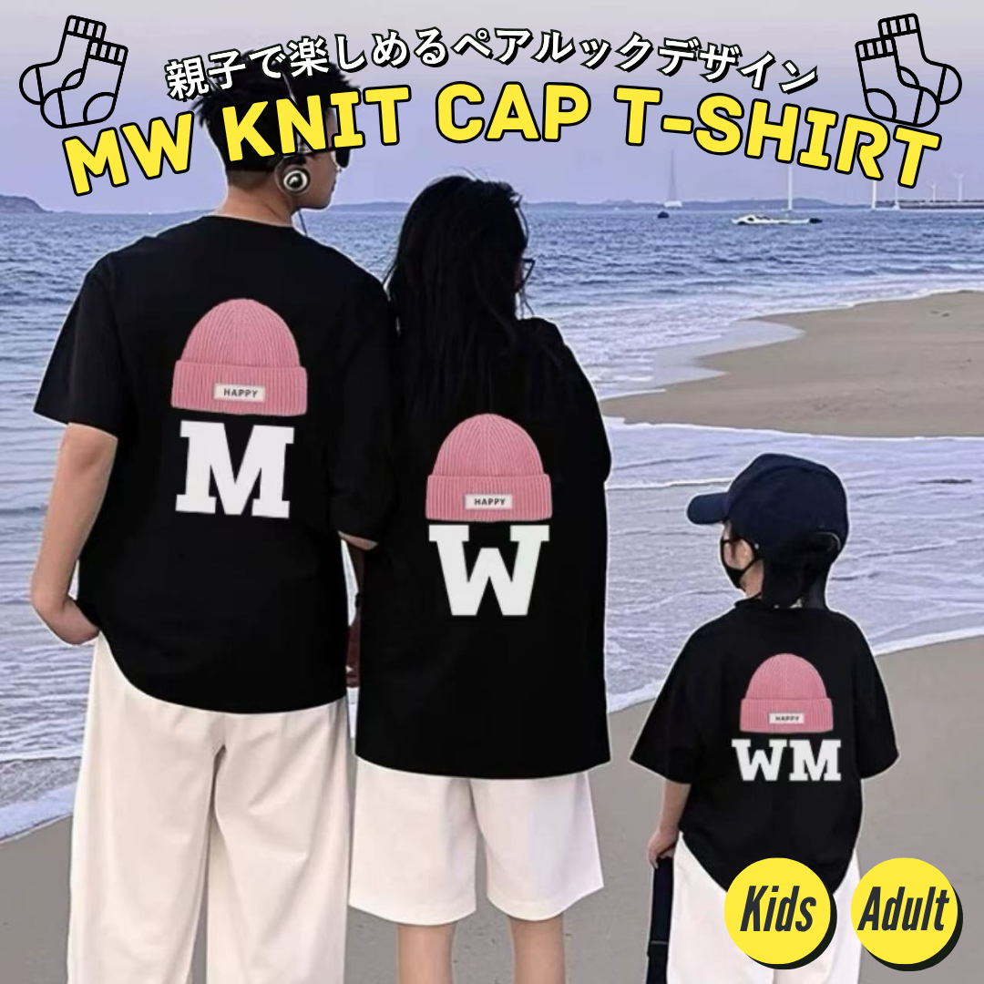 親子ペアルック【MWニット帽Tシャツ】は、可愛らしいニット帽デザインがポイントのファミリー向けアイテムです。柔らかく快適な素材を使用しており、日常使いから特別なお出かけまで活躍します。ユニセックス仕様で親子お揃いのコーディネートを楽しめ、シンプルながら遊び心あるデザインが家族の絆を感じさせる一着です。