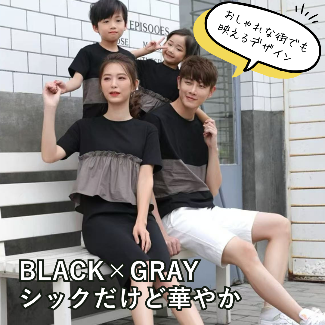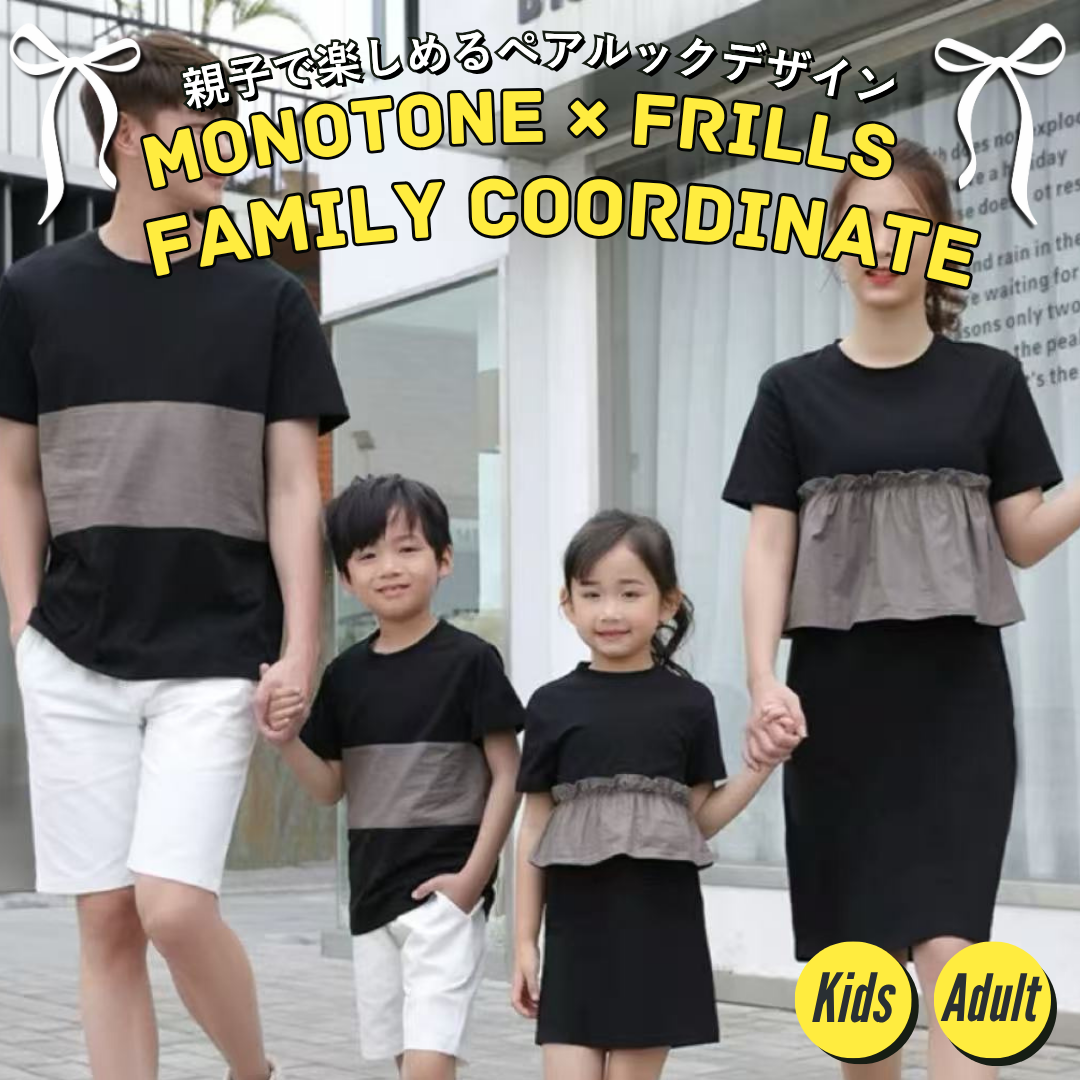 親子ペアルック モノトーン×フリル 洗練ファミリーリンク