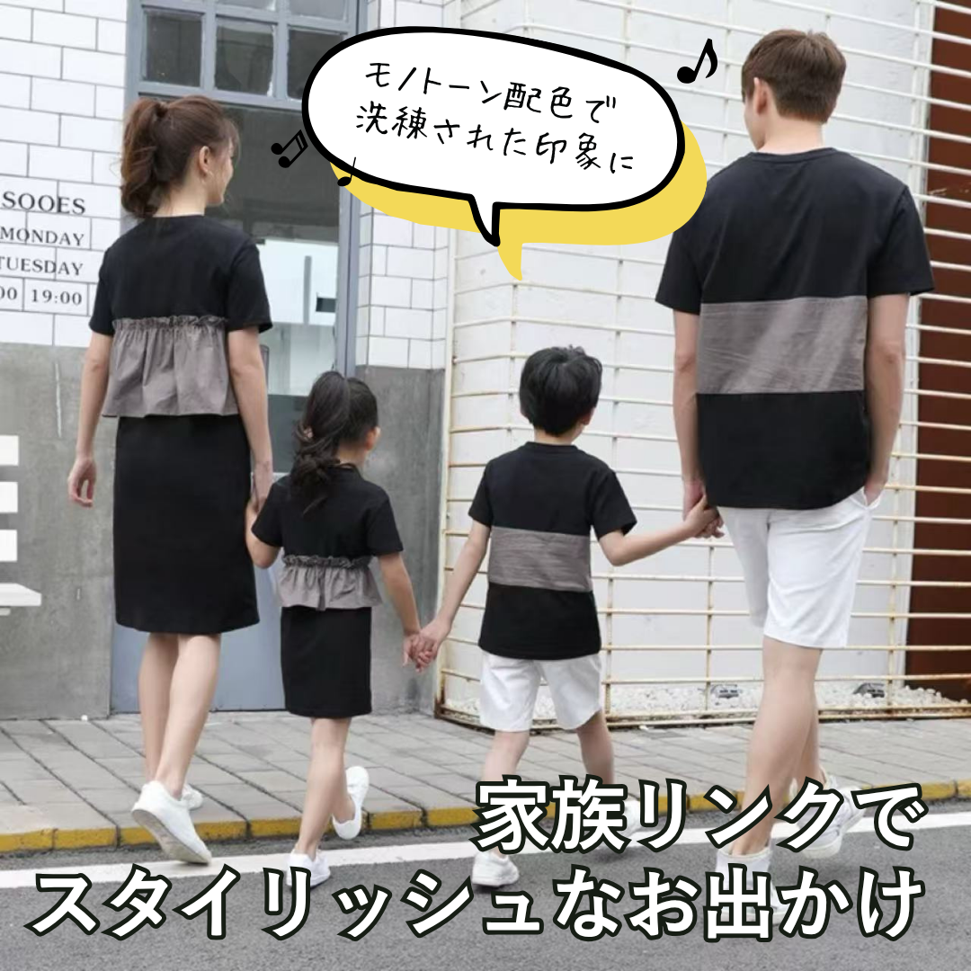 親子ペアルック【モノトーン×フリル 洗練ファミリーリンク】は、モノトーンの落ち着いた色合いに可愛らしいフリルを組み合わせたスタイリッシュなTシャツです。柔らかく快適な素材を使用しており、日常からお出かけまで幅広く活躍します。ユニセックスデザインで親子お揃いのコーデを楽しめ、洗練された雰囲気の中に家族の絆を感じさせる一着です。