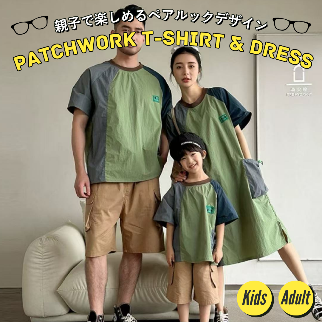 親子ペアルック 配色Tシャツ&リンクワンピース