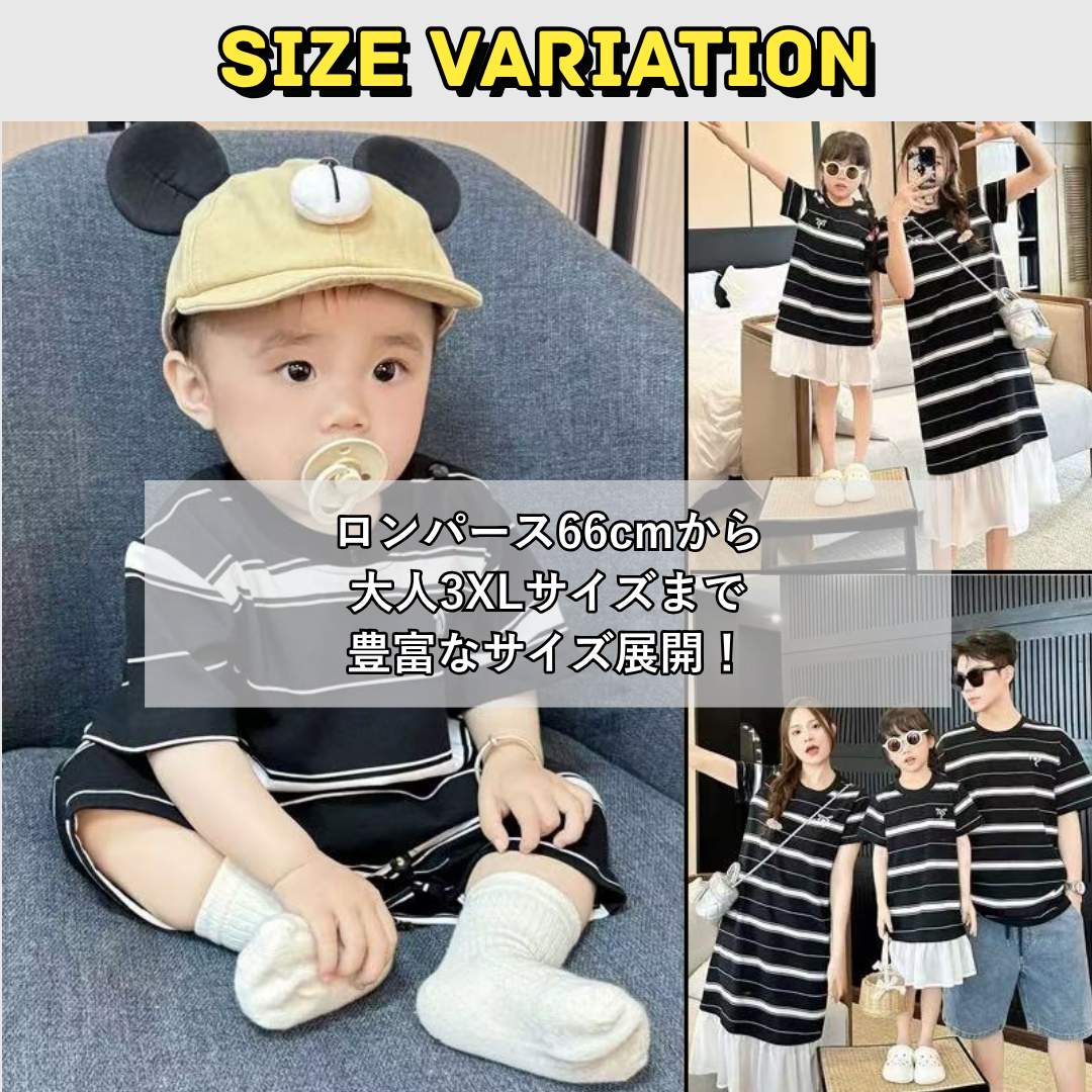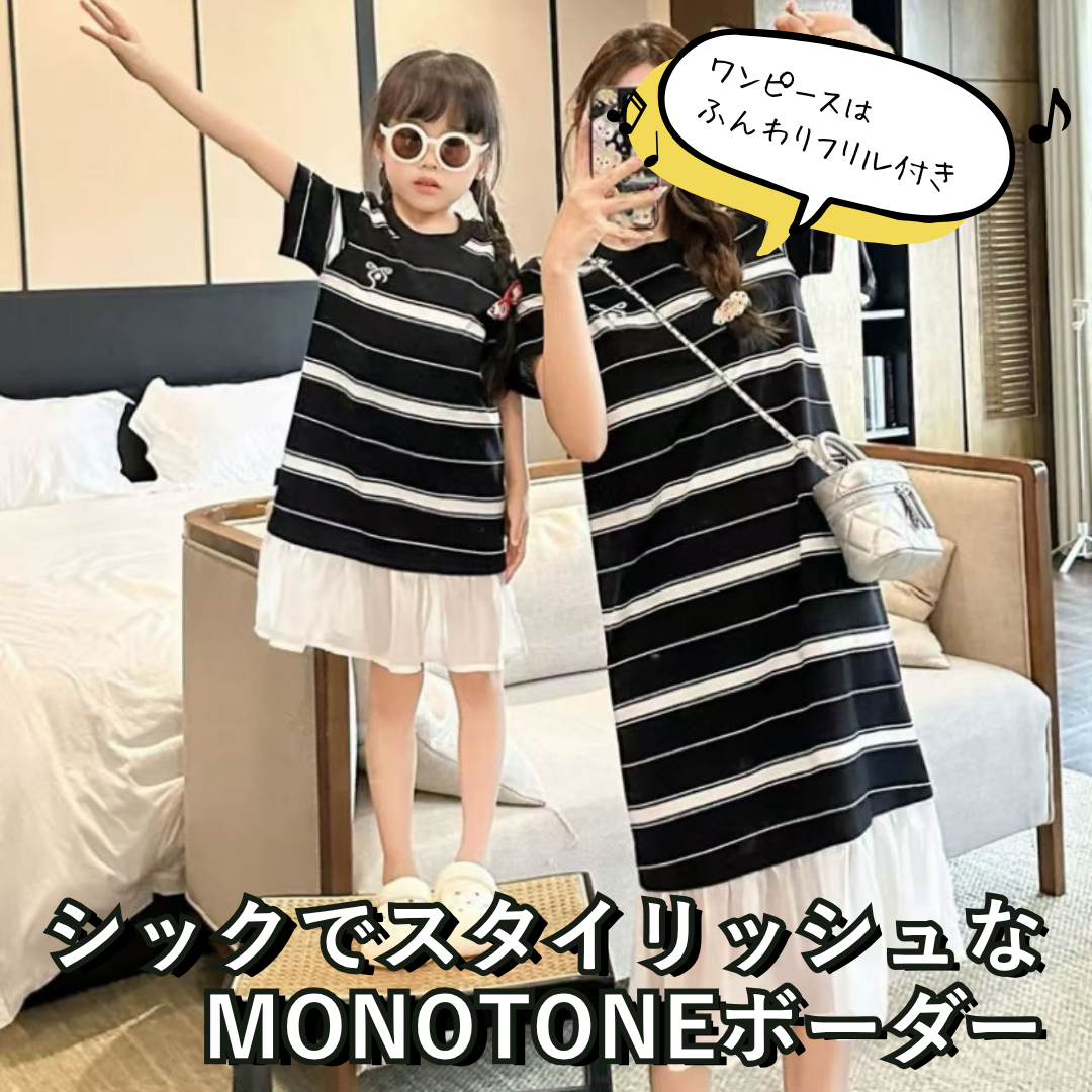 親子ペアルック モノトーンボーダーTシャツ&ワンピース