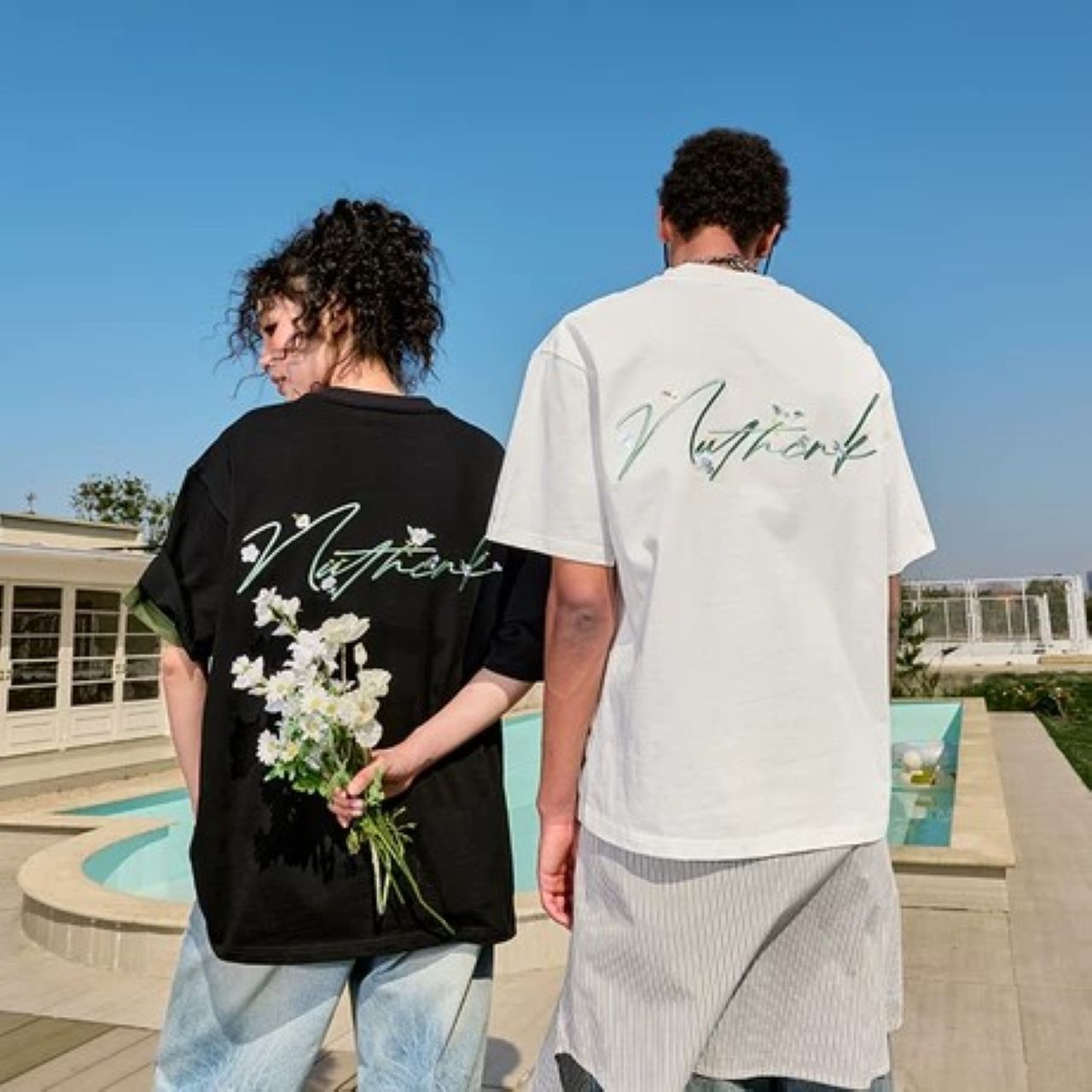 カップルペアルック【Nuthink】刺繍フラワー&ロゴTシャツは、アメリカントレンドを取り入れたデザインと、ゆったりとしたフィット感が魅力のアイテムです。高品質な素材を使用し、柔らかく快適な着心地を実現。日常使いはもちろん、特別なお出かけにも活躍します。ユニセックス仕様で、カップルや友人同士でのリンクコーデを気軽に楽しめる一枚です。
