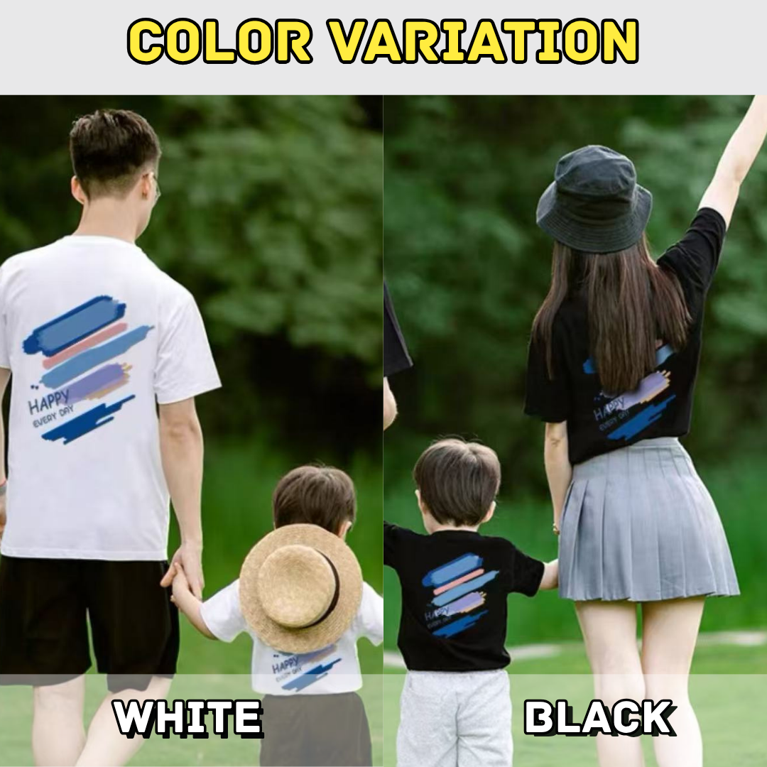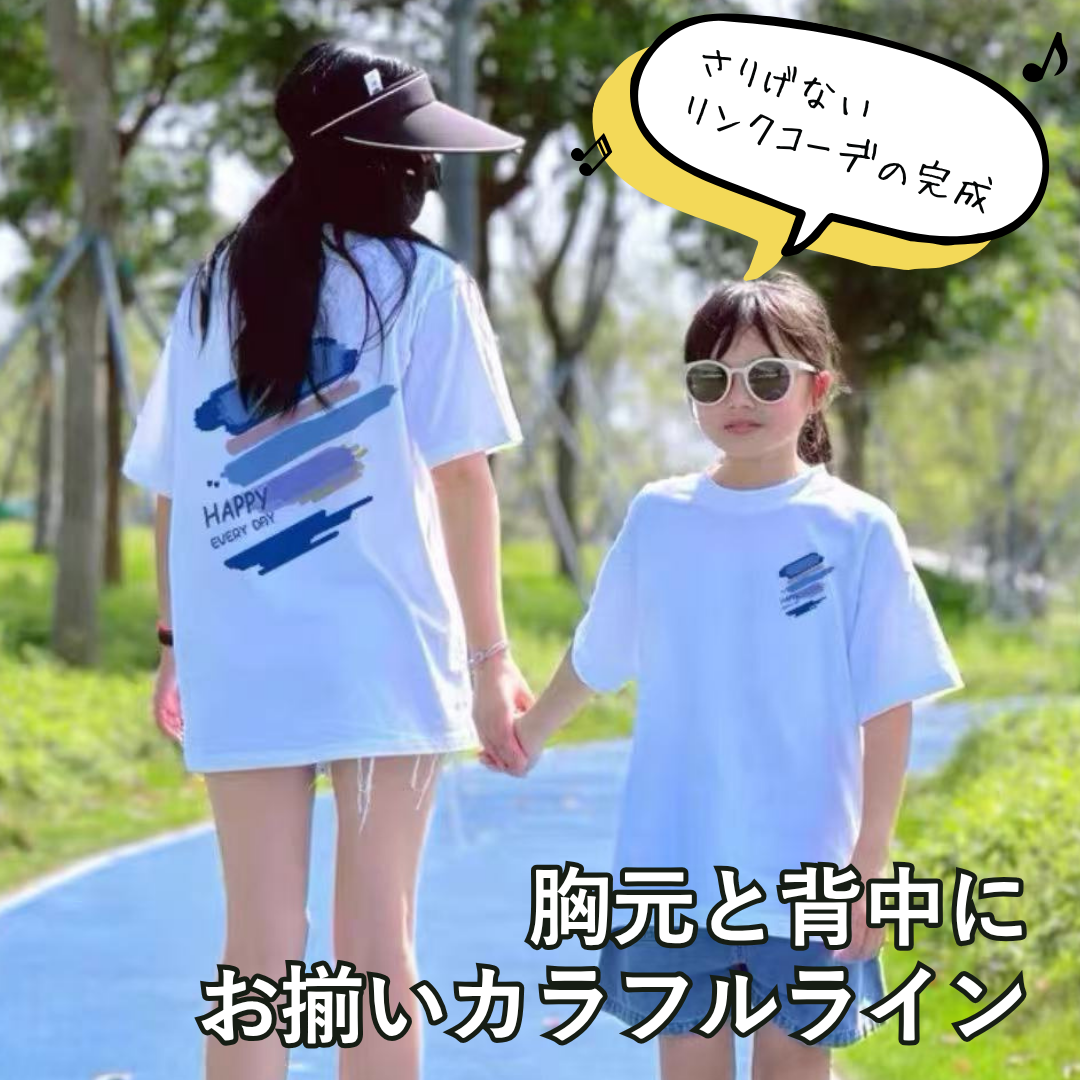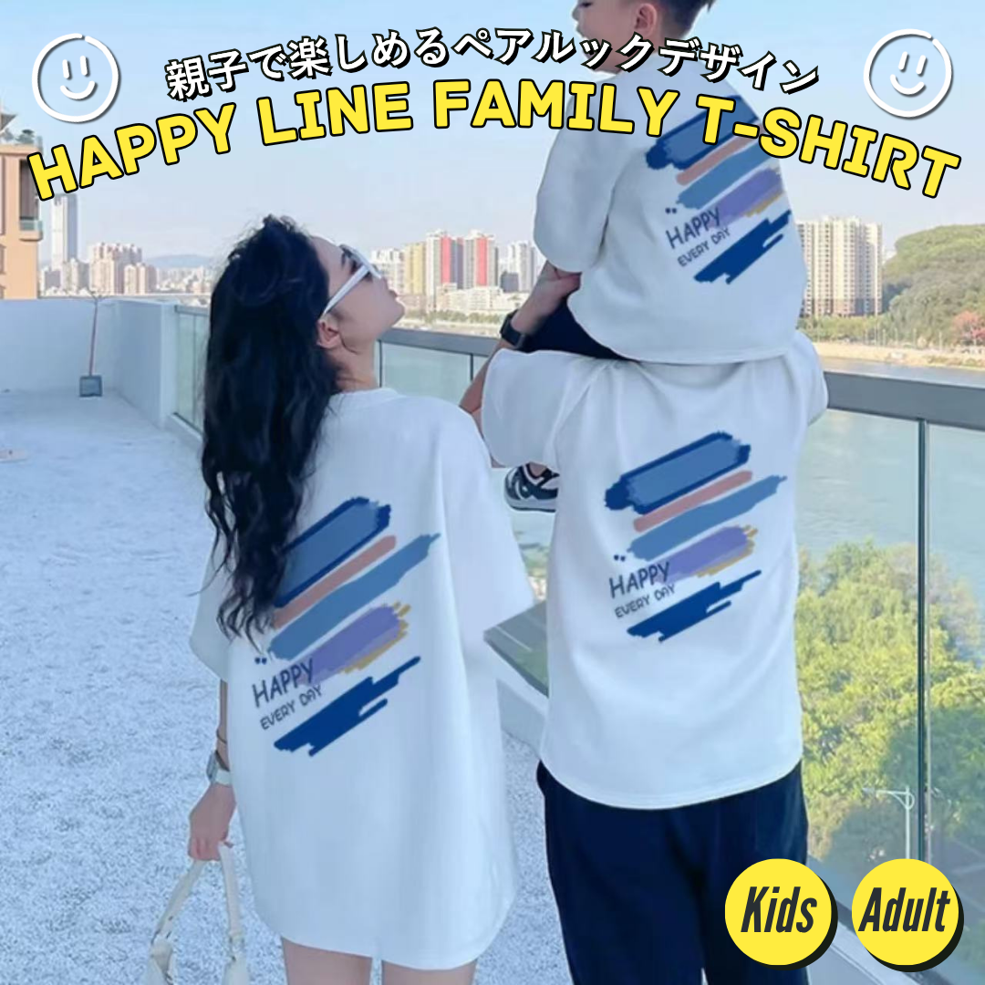 親子ペアルック ハッピーラインが映えるファミリーTシャツ