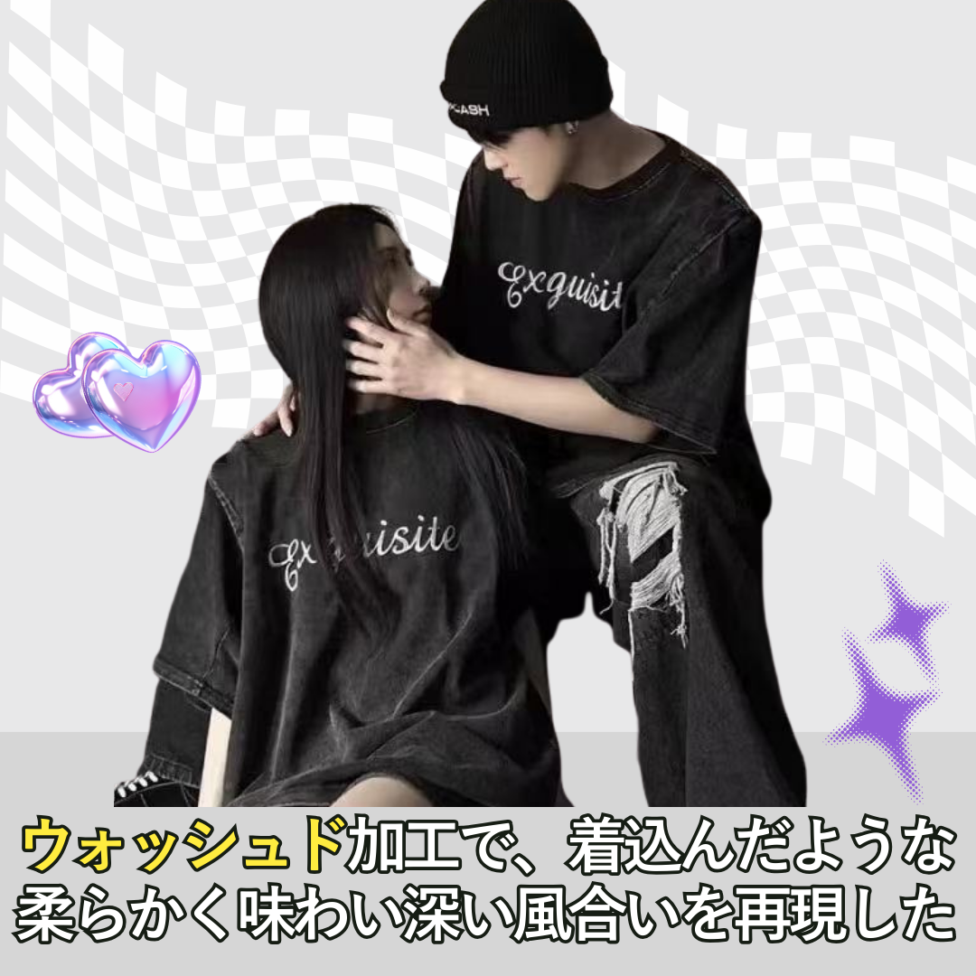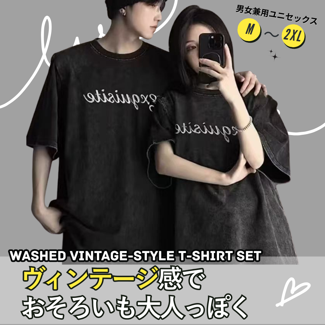 カップルペアルックウォッシュド加工 ヴィンテージ風Tシャツセット