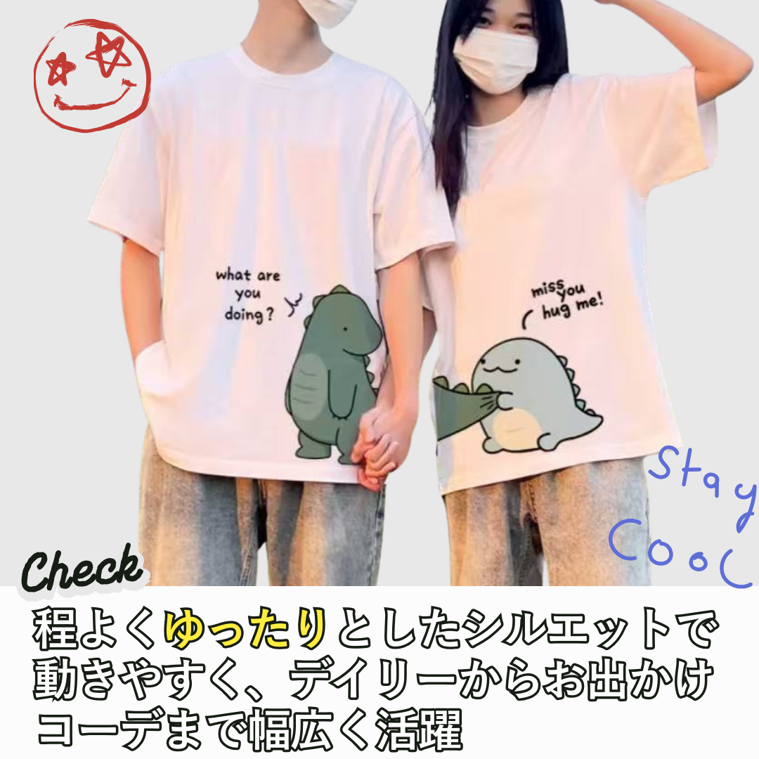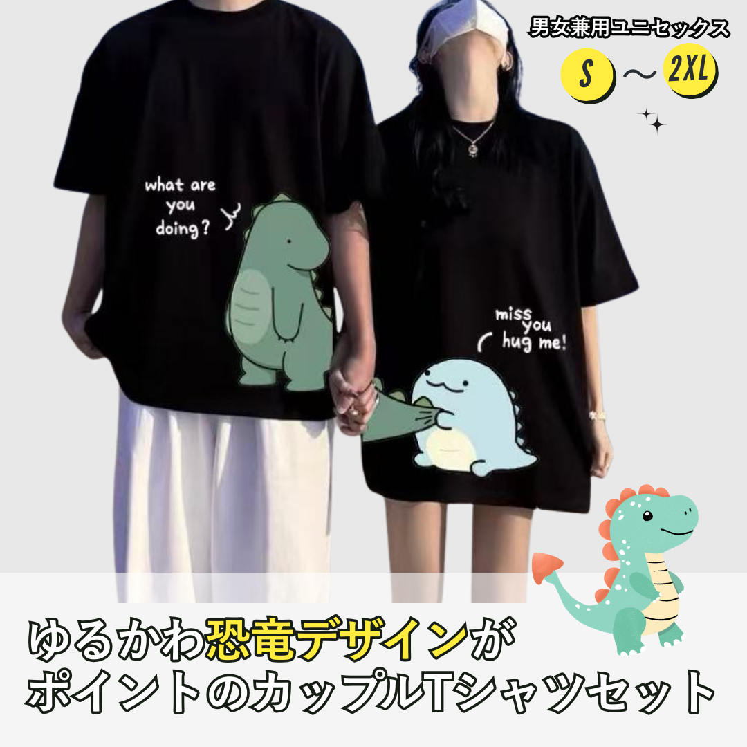 カップルペアルック 怪獣アートでつながるTシャツ【2点セット】