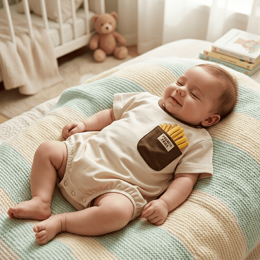 最大のポイントは、胸元のポケットからひょっこりと顔を出す、リアルで立体的なフレンチフライのモチーフ。