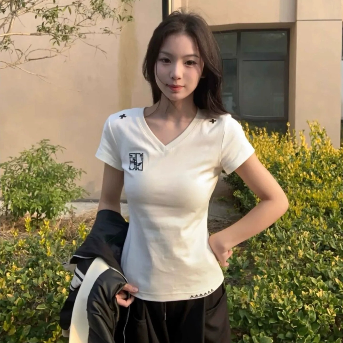モノトーンベースでどんなスタイルにもなじみやすく、デニムやショートパンツと合わせるだけでこなれた印象に仕上がります。