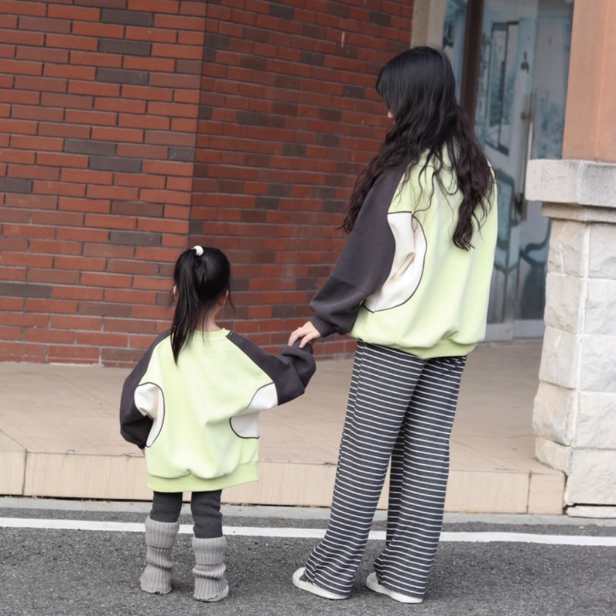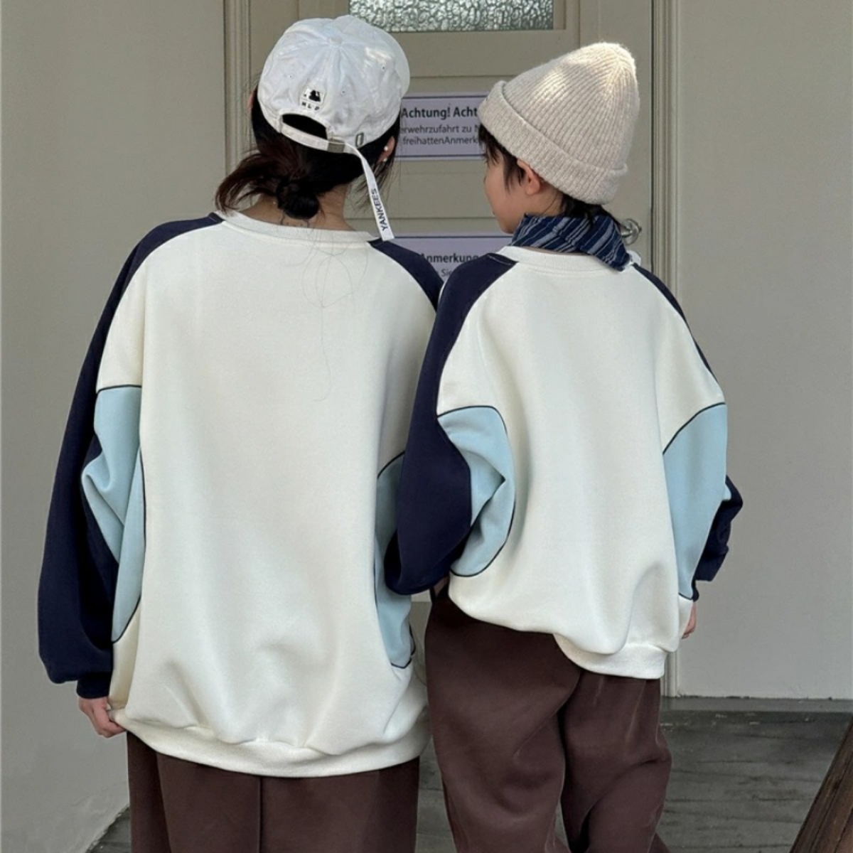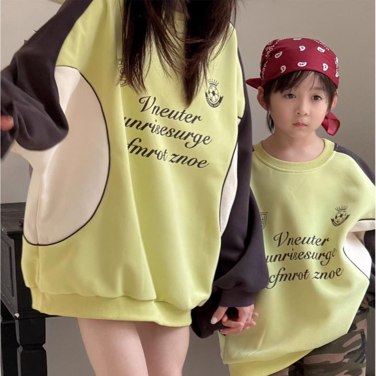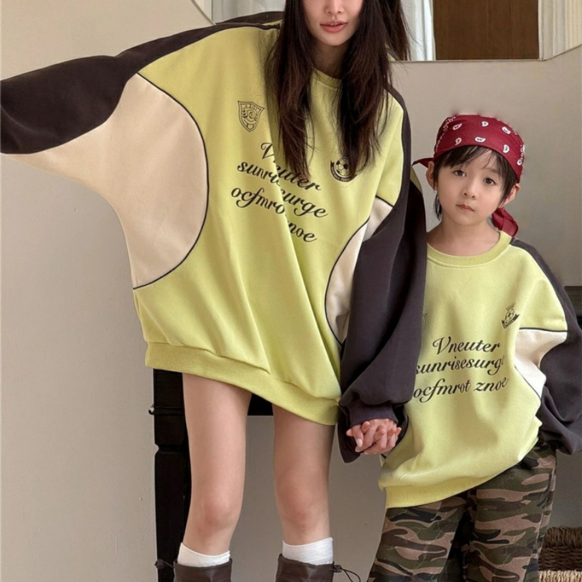 親子ペアルック バイカラーサイドライン ロゴトレーナー