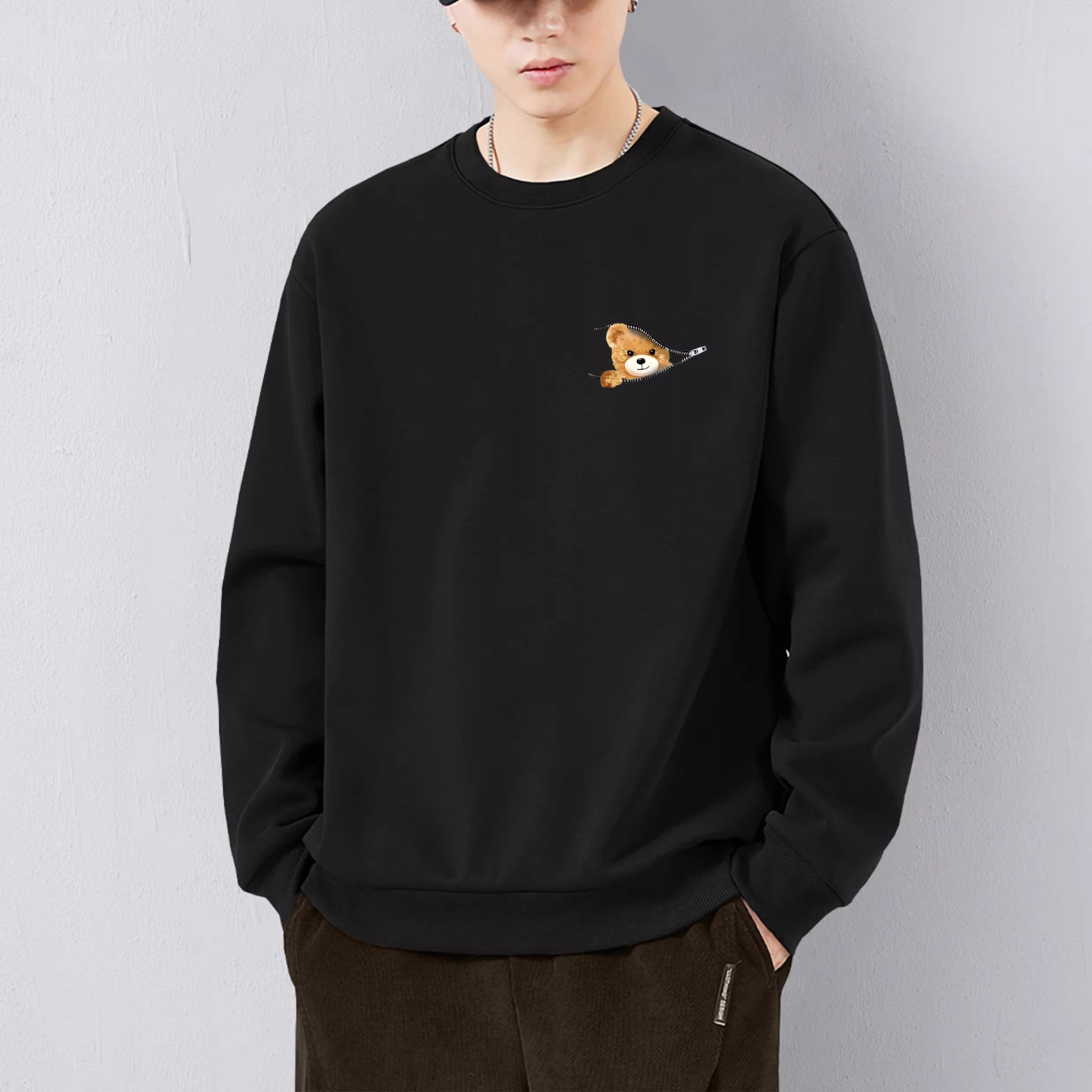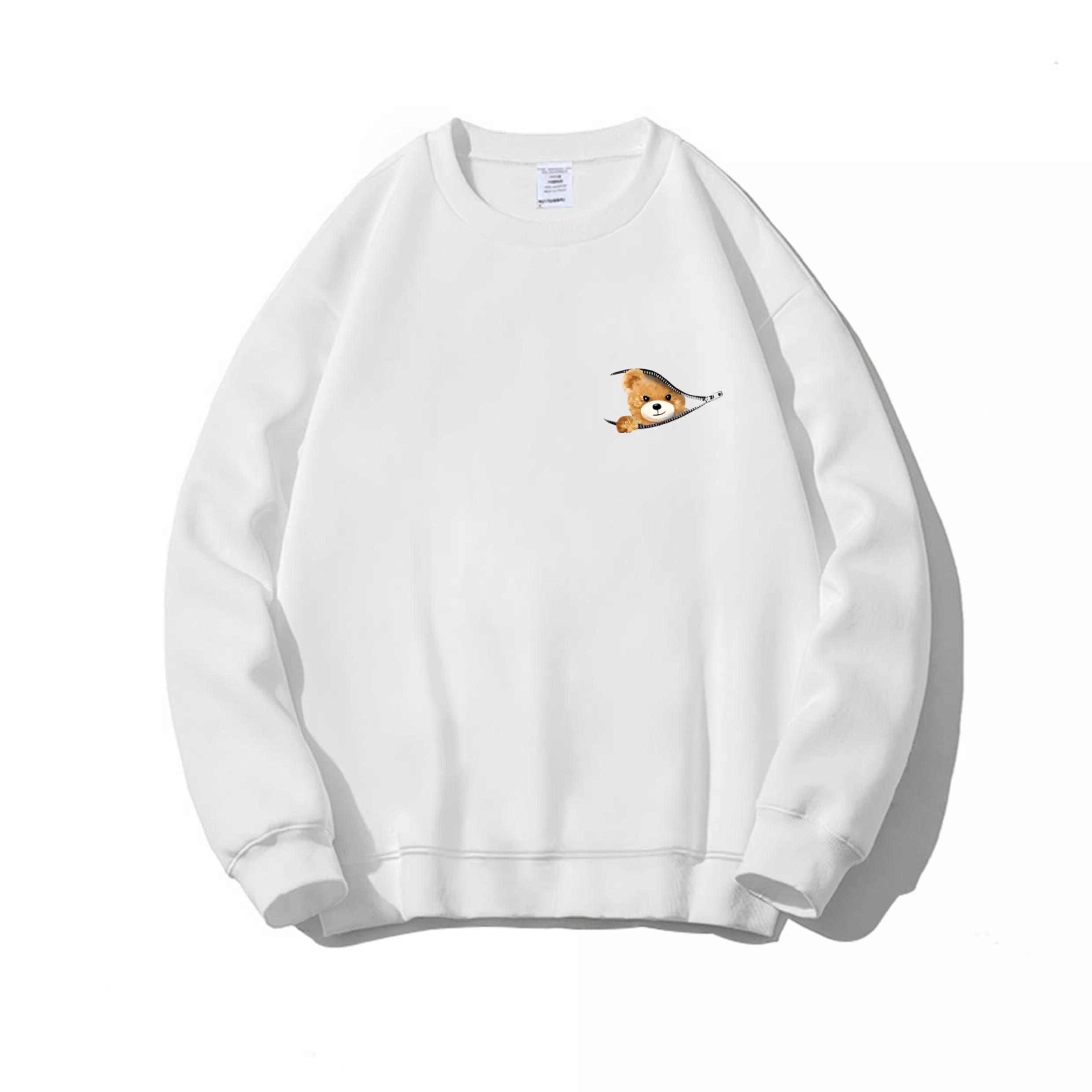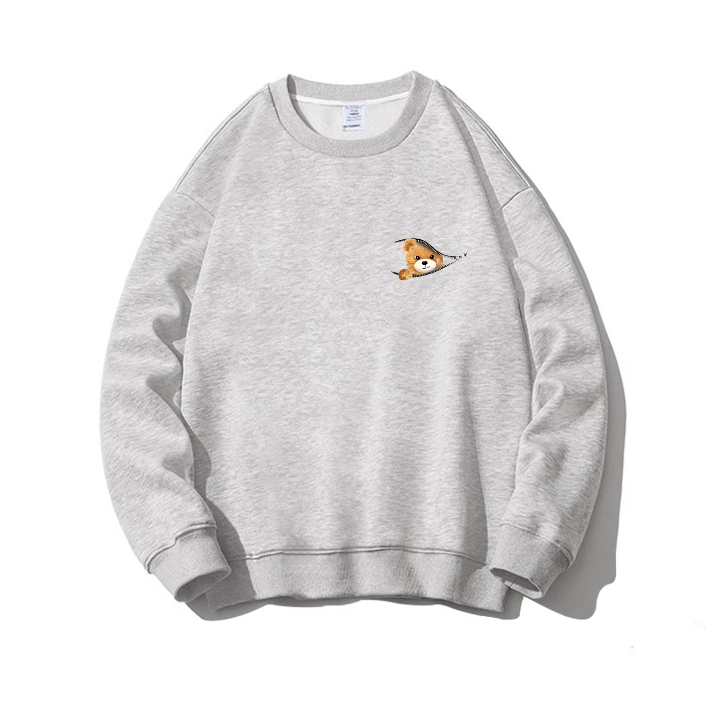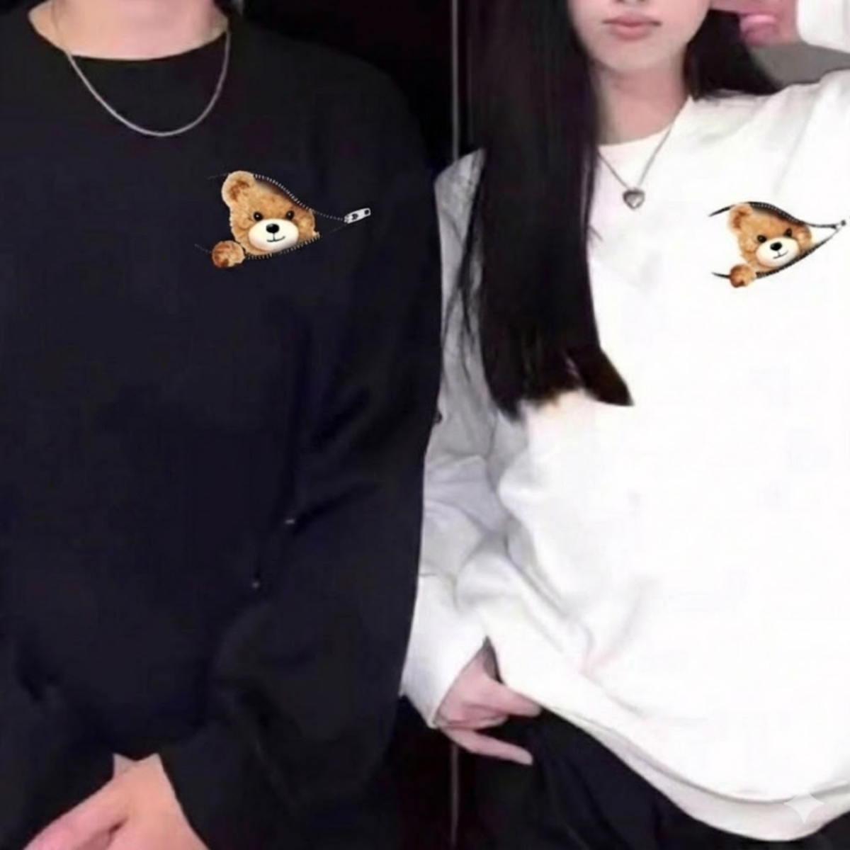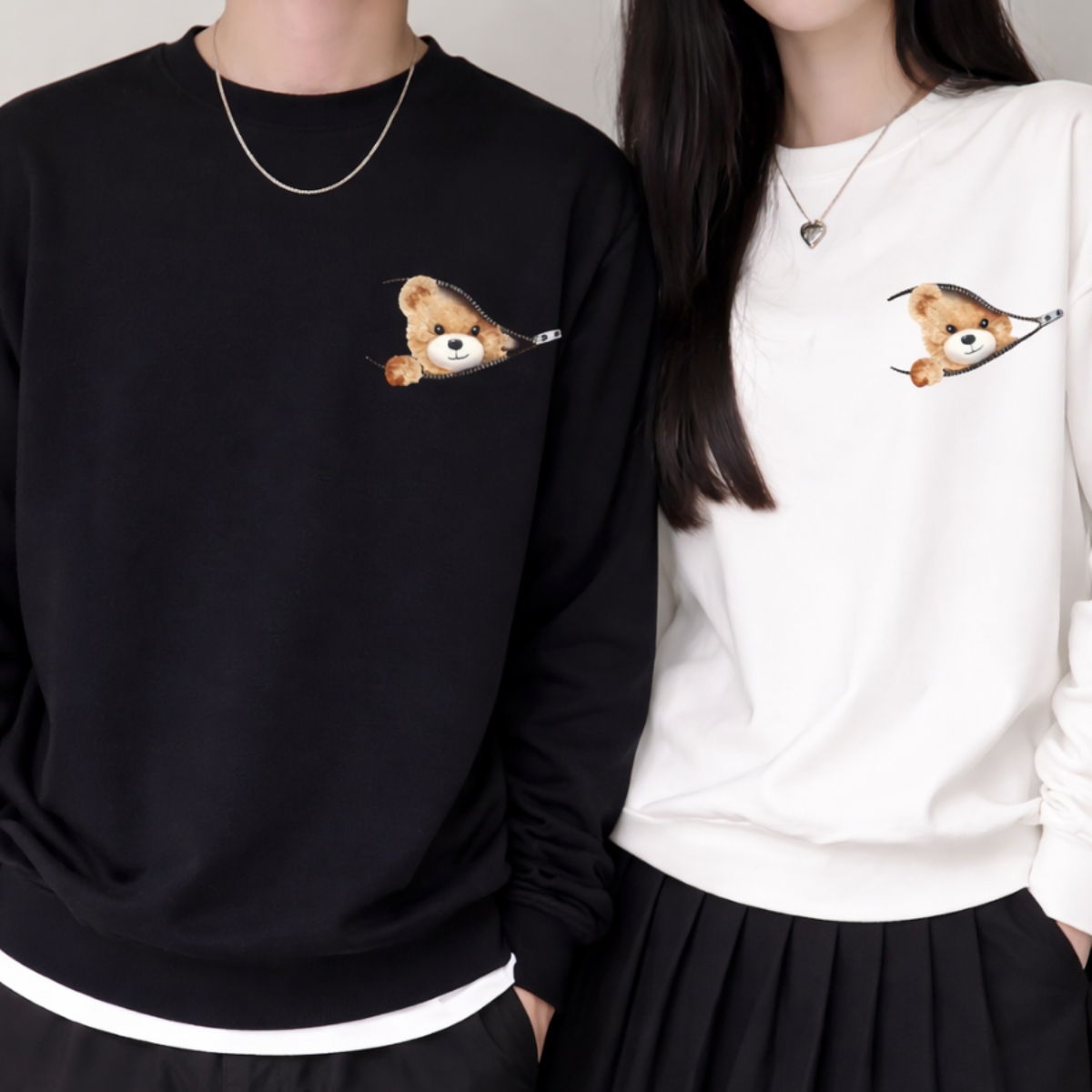 カップルペアルック ジップから覗くスマイルベアトレーナー ユニセックス