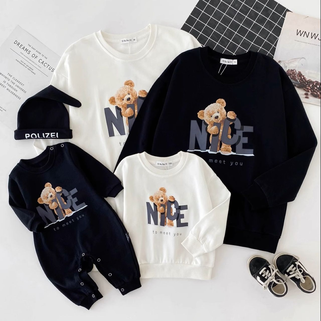 親子ペアルック モノトーン NICEベアー トレーナー スウェット 家族お揃いコーデ