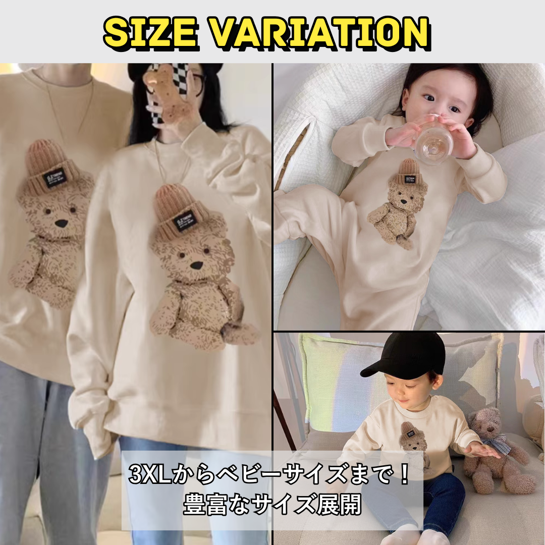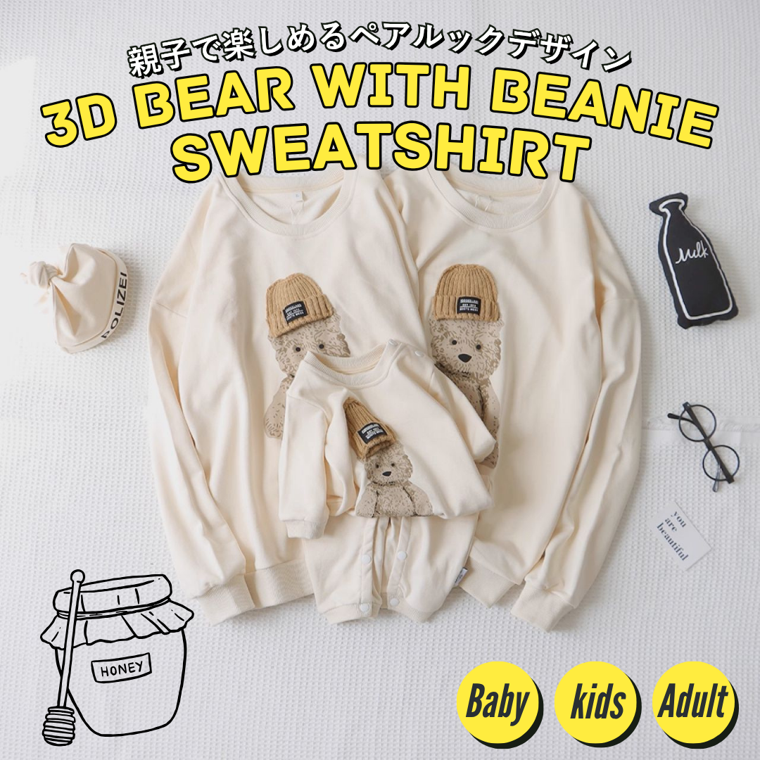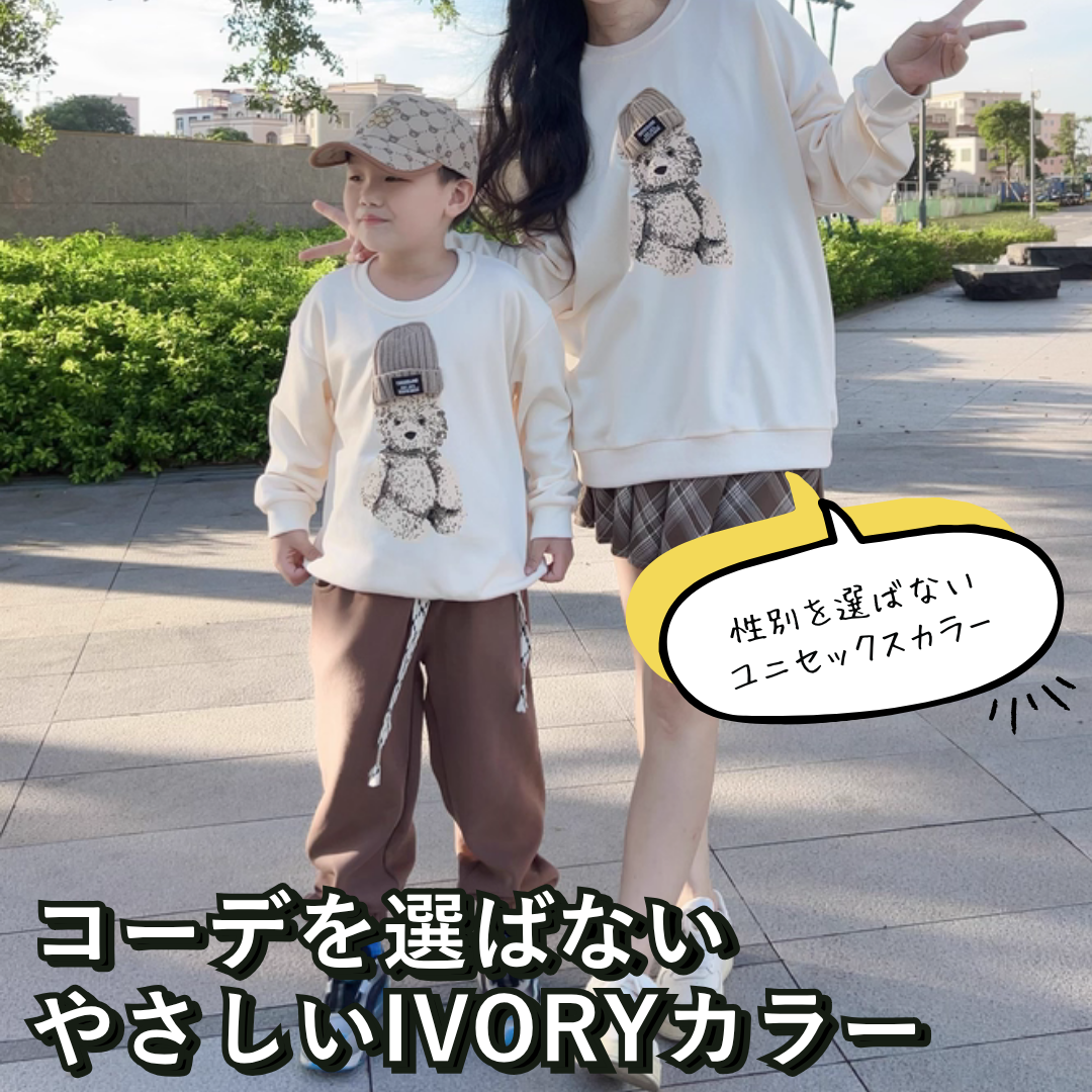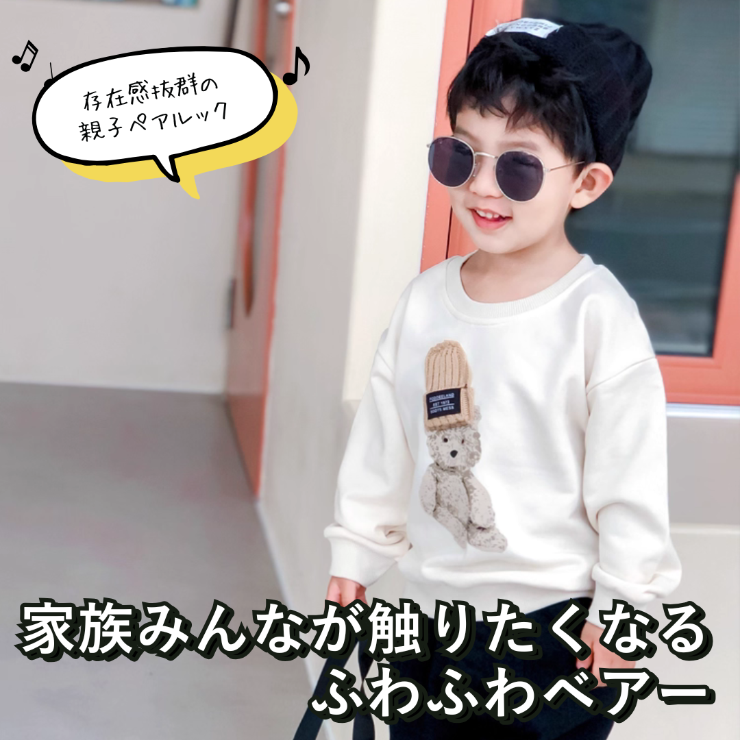 親子ペアルック 立体ニット帽ベアー トレーナー スウェット 家族お揃いコーデ