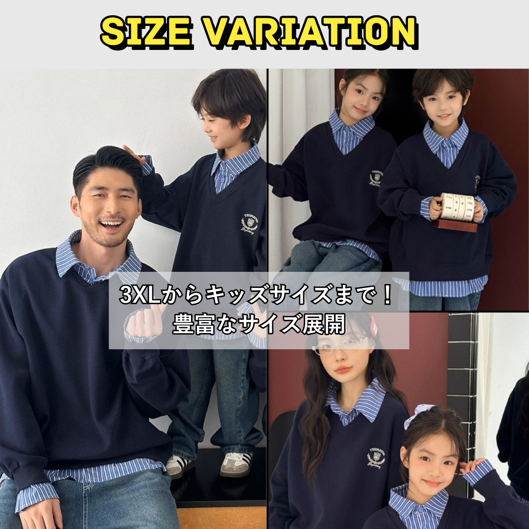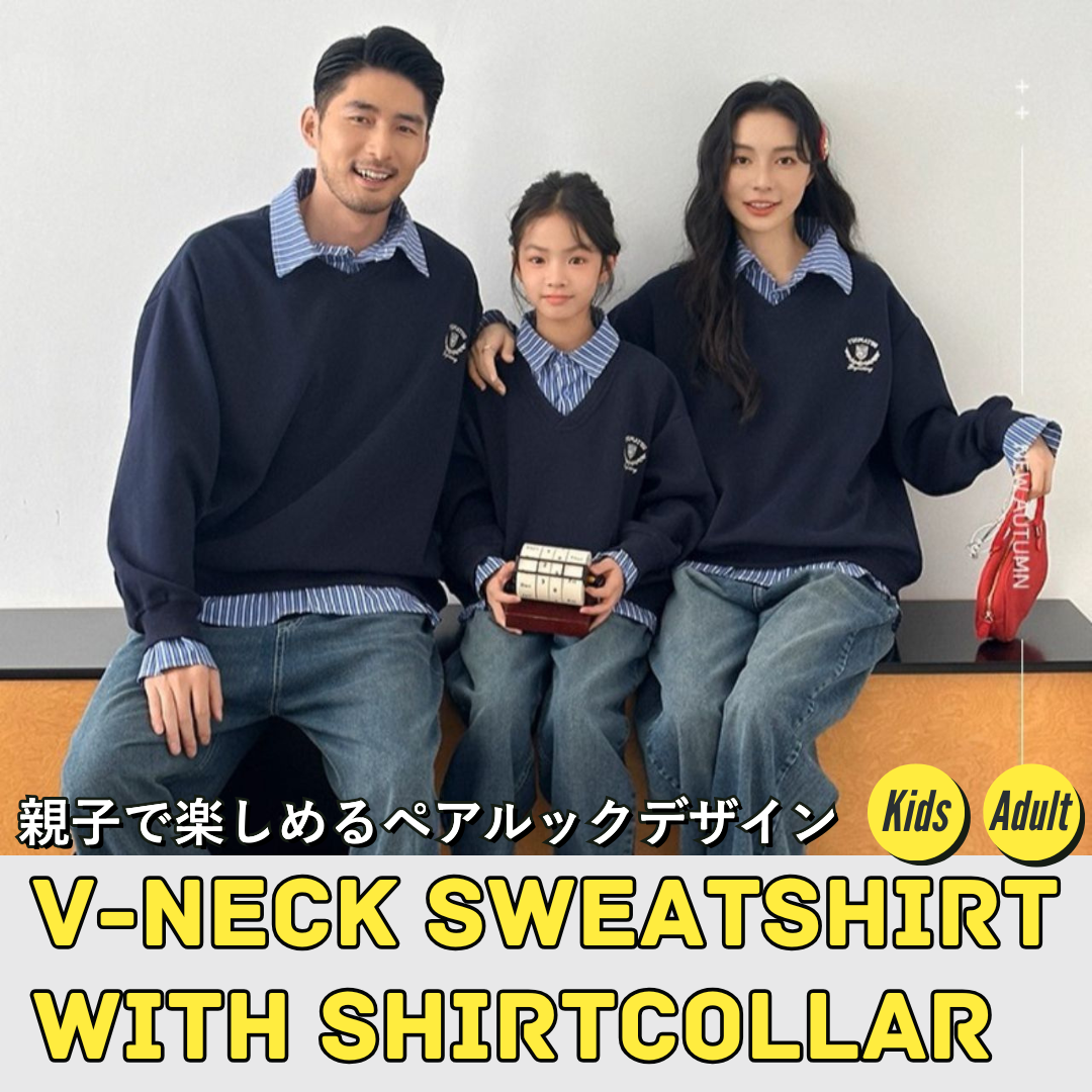 親子ペアルック シャツ襟付き トレーナー スウェット 重ね着風デザイン