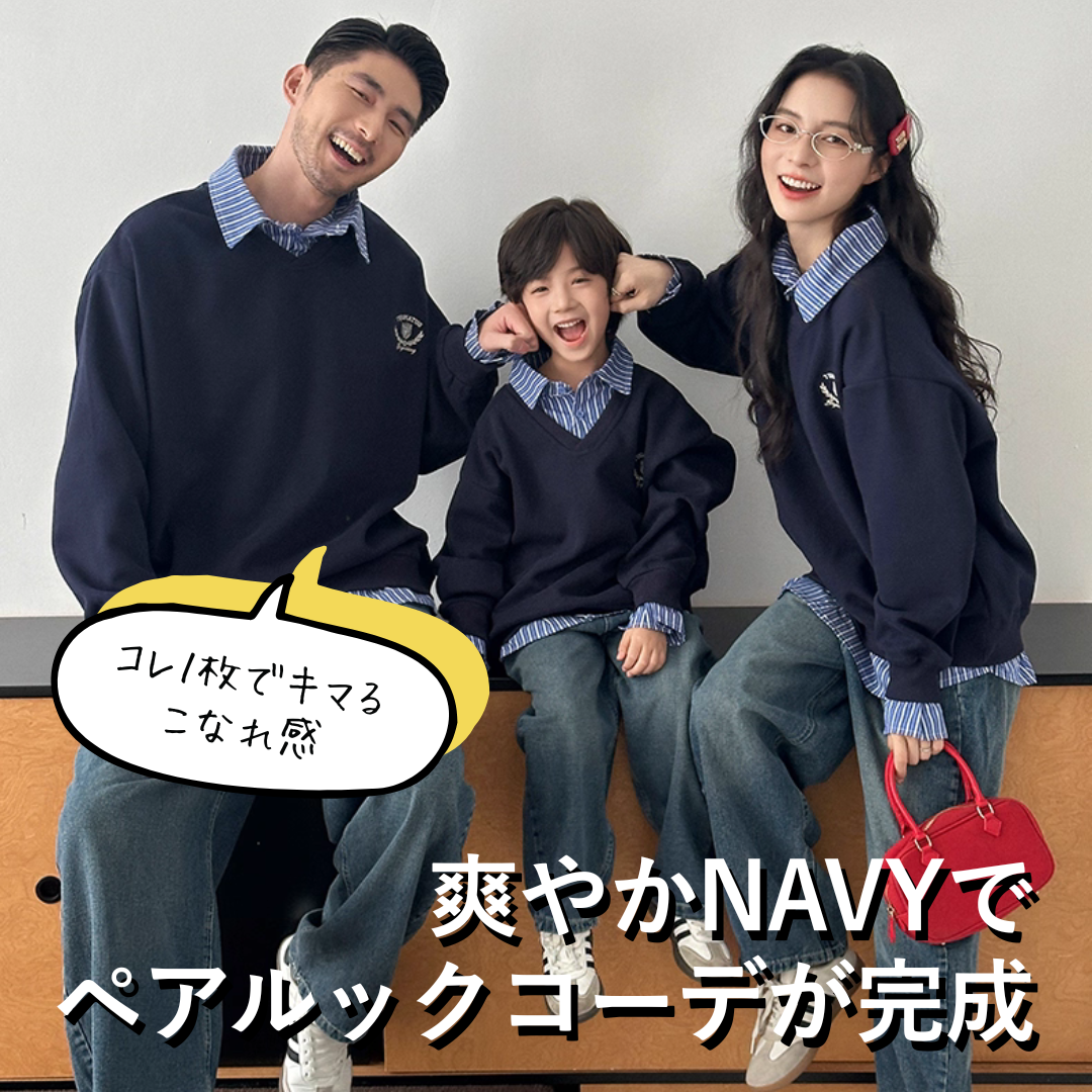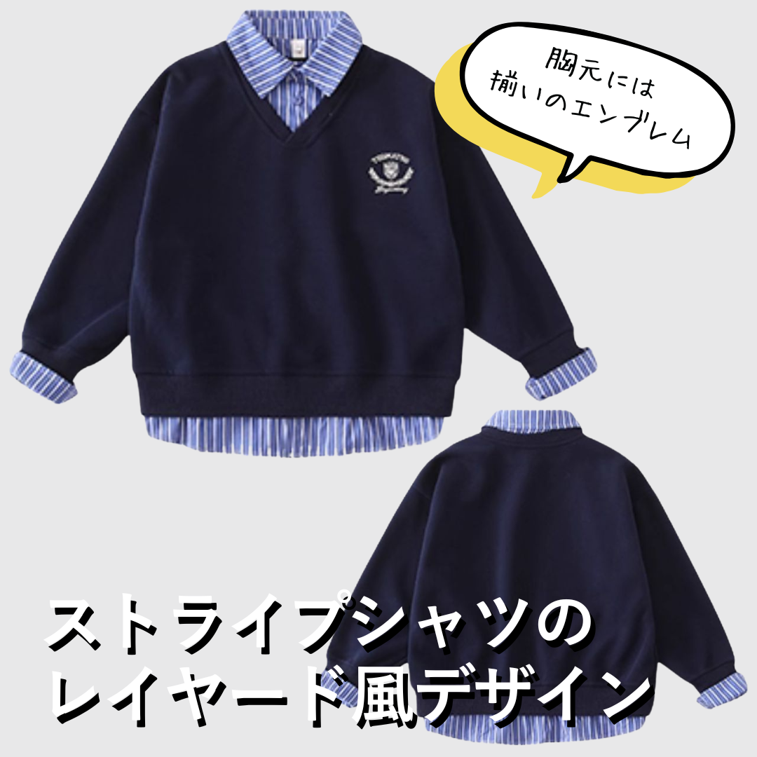 親子ペアルック【シャツ襟付き重ね着風トレーナー】は、カジュアルながら上品な印象を演出できるリンクコーデアイテムです。鮮やかなブルーストライプの襟と裾がシャツを重ねたように見えるデザインで、これ一枚でスタイルが完成します。ユニセックス仕様で親子お揃いにぴったり。公園やお出かけ、イベントなど幅広いシーンで活躍します。さりげなくおしゃれを楽しみたいご家族におすすめの一枚です。