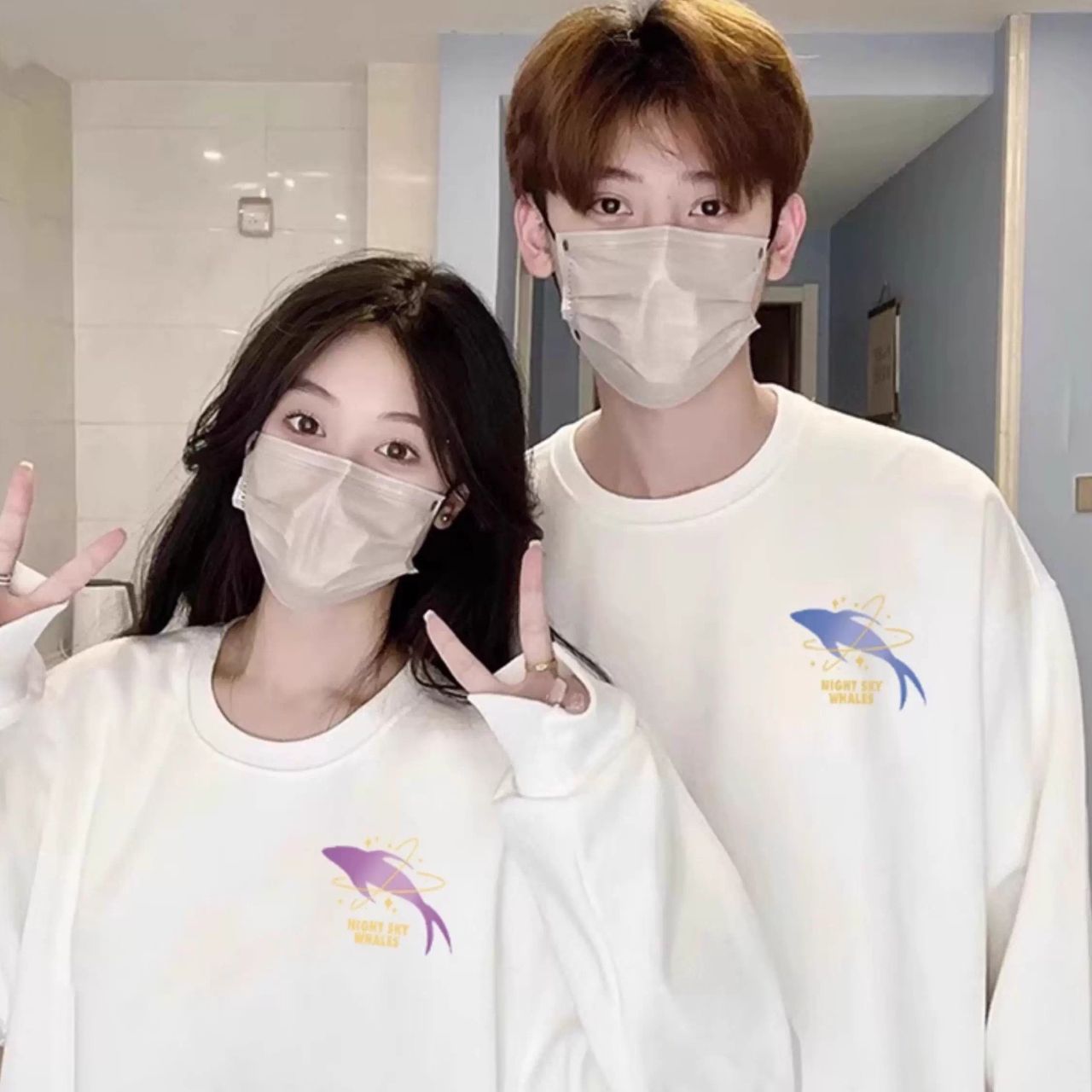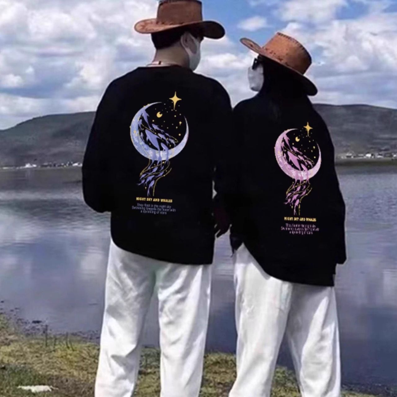 カップルペアルック 月夜にきらめく イルカトレーナー スウェット【2点セット】