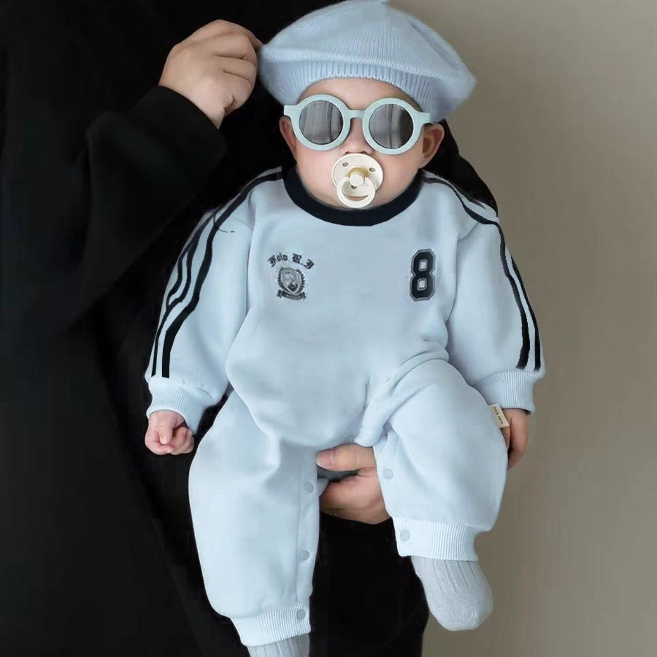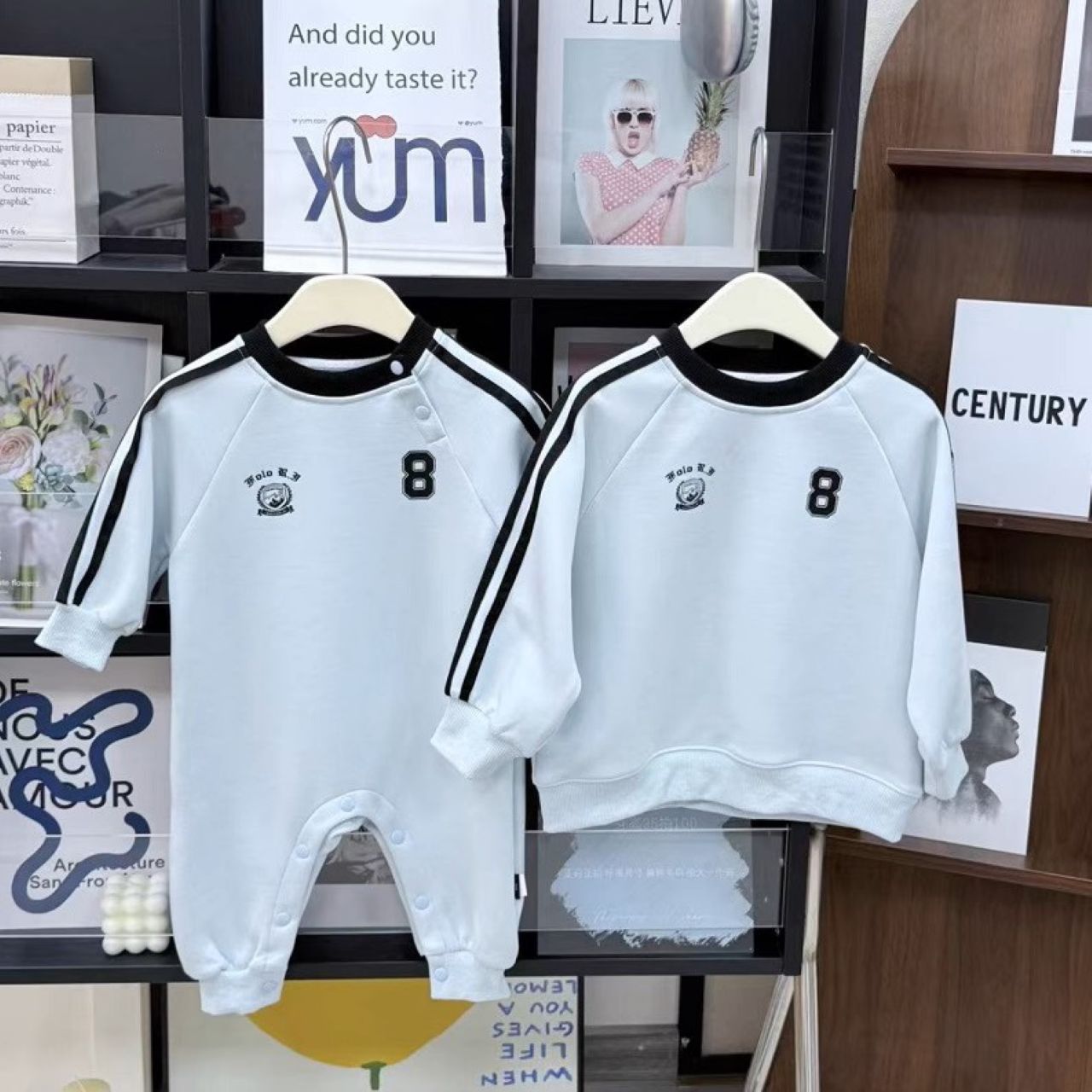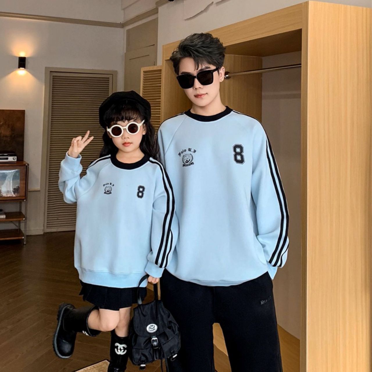 親子ペアルック 8ロゴ ライン入り ブルートレーナー