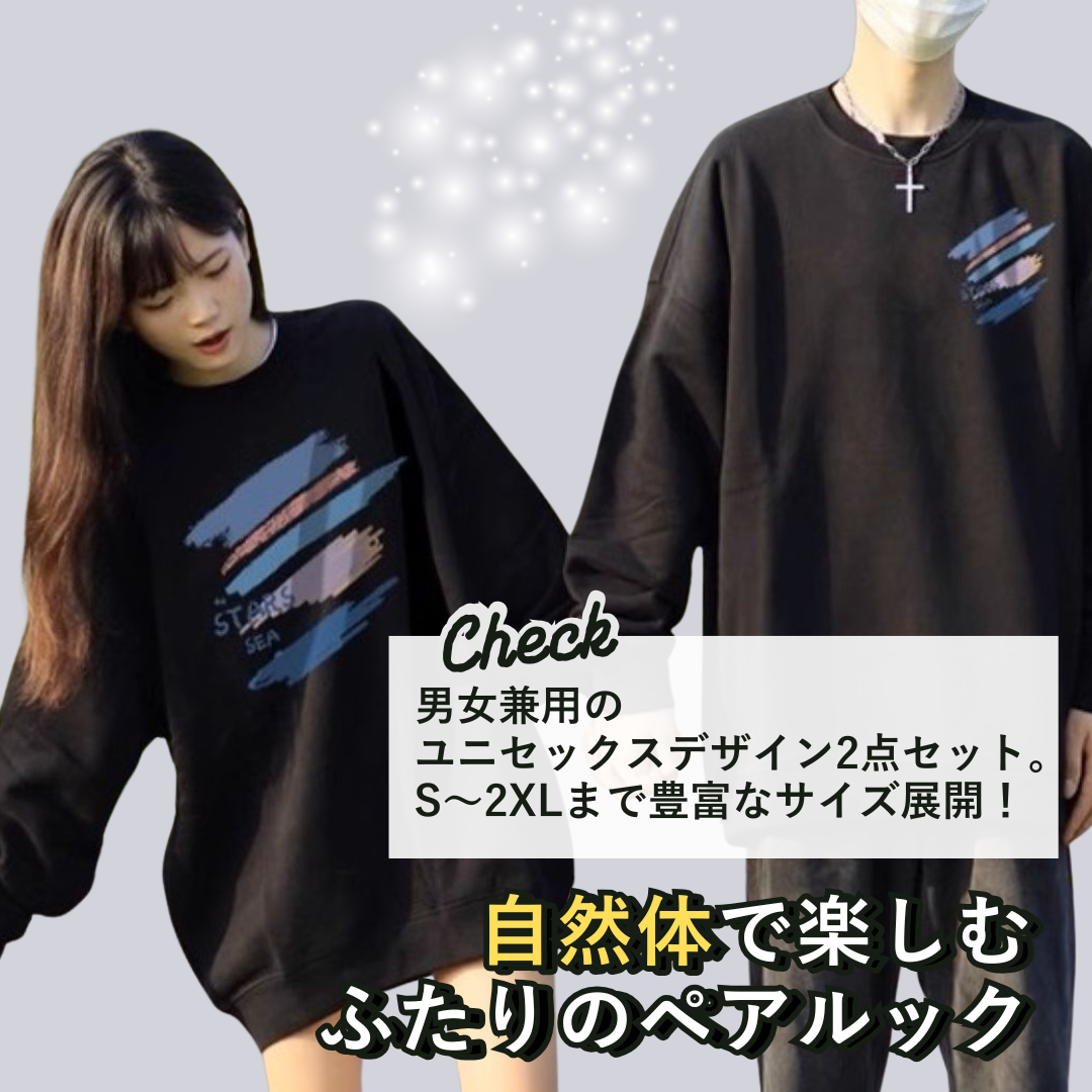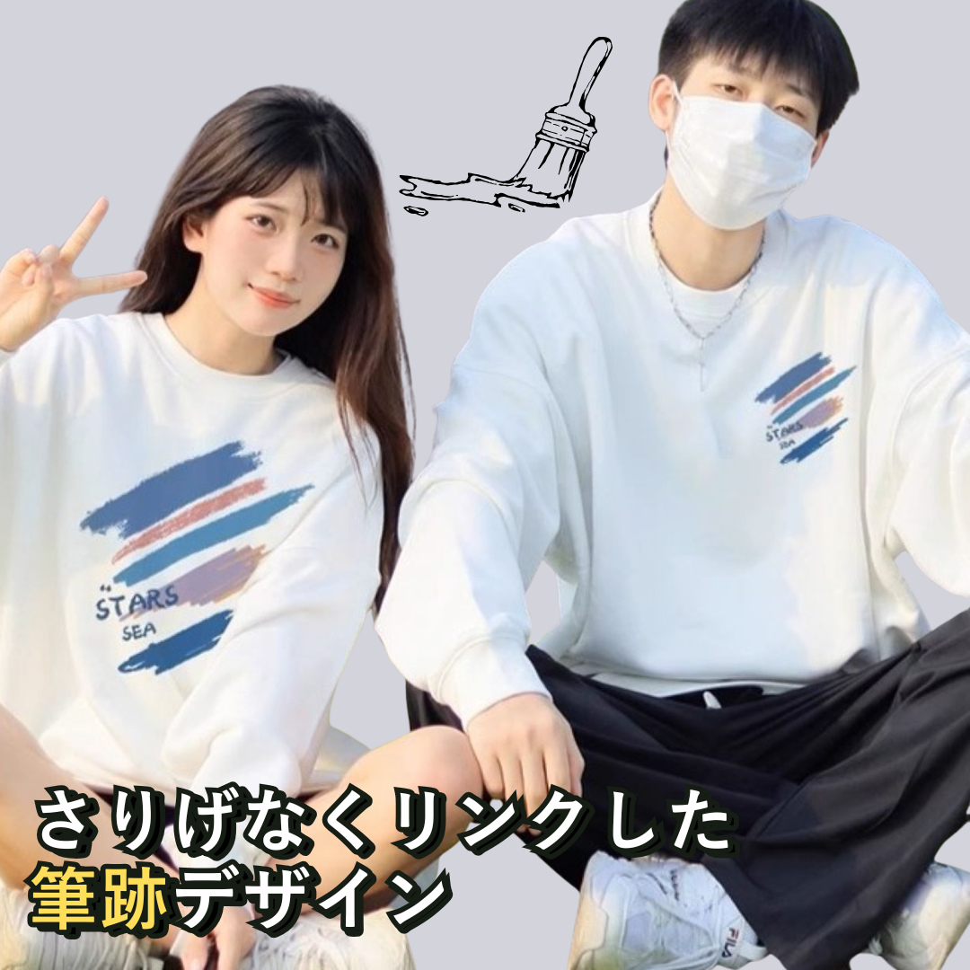 カップルペアルック【ペイントブラッシュ トレーナー【2点セット】】は、アートな感性と遊び心を感じさせるデザインが魅力のアイテムです。カラフルなブラッシュストロークが印象的で、二人のスタイルに個性と彩りをプラスします。ユニセックス仕様の2点セットで、自然なお揃いコーデを楽しめるのもポイント。デートやカジュアルなお出かけはもちろん、リラックスタイムにもぴったりな一着です。