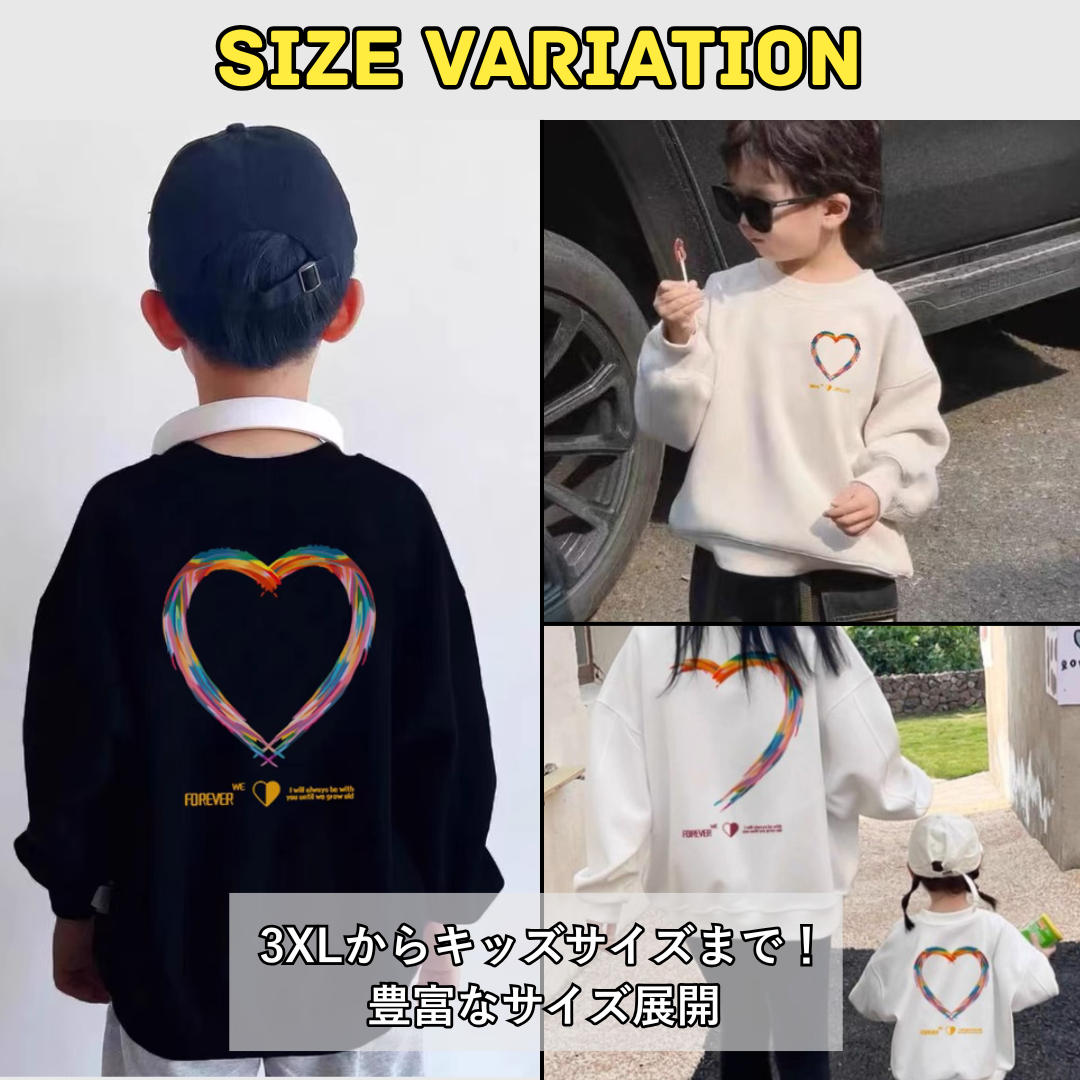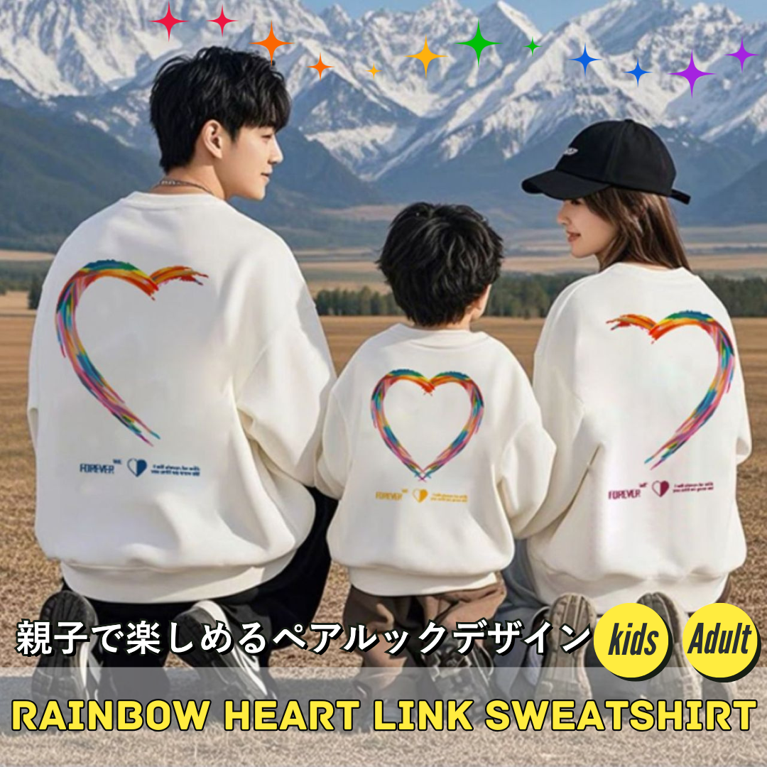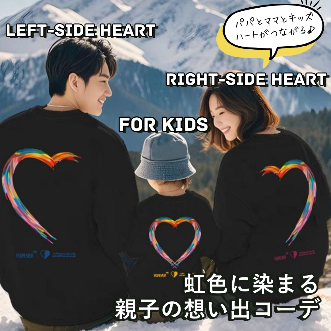 親子のスタイルを一層引き立てる、カラフルでハッピーなアイテムです。鮮やかなレインボーデザインと愛らしいハートマークが特徴で、カジュアルながらも楽しい雰囲気を演出します。ユニセックスで親子お揃いを楽しめ、特別な絆を感じながら心が弾むような明るい印象をプラスします。カラフルなデザインが二人の個性を際立たせ、公園での散策や家族のお出かけ、思い出作りにもぴったりの一枚です。