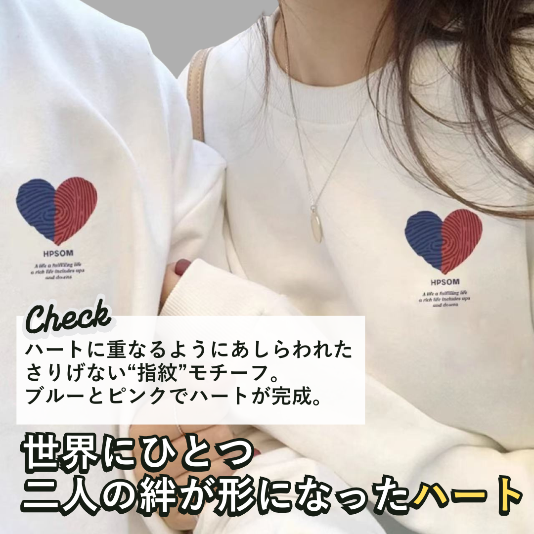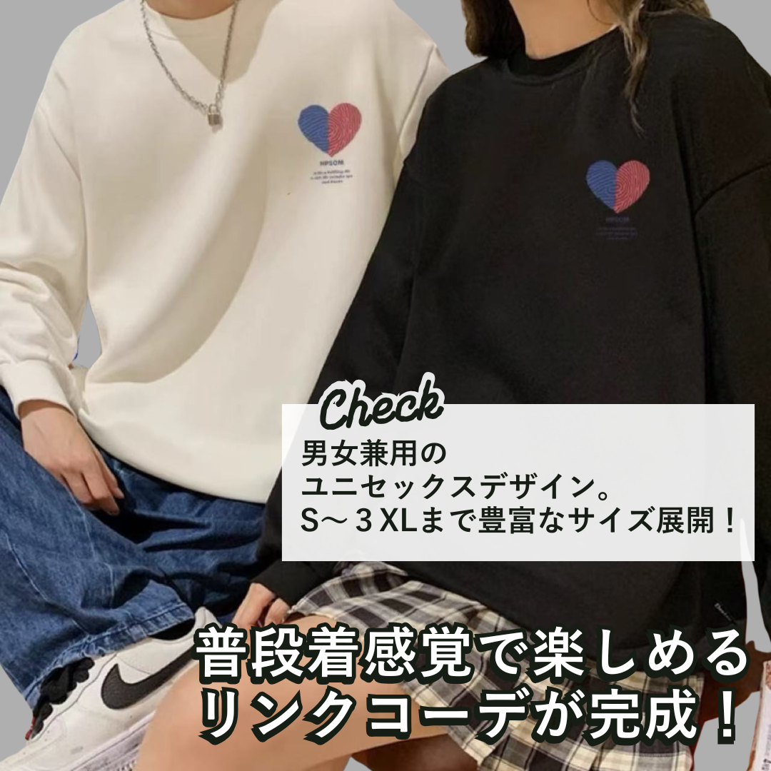 カラフルなハートイラストがポイントのペアルックトレーナーです。シンプルながらおしゃれなナチュラルカラーと、洗練されたダークカラーの2色展開。豊富なサイズ展開で、恋人や友人、家族と一緒にコーディネートを楽しめます。柔らかな素材で着心地が良く、デイリーからお出かけまで幅広く活躍するアイテムです。