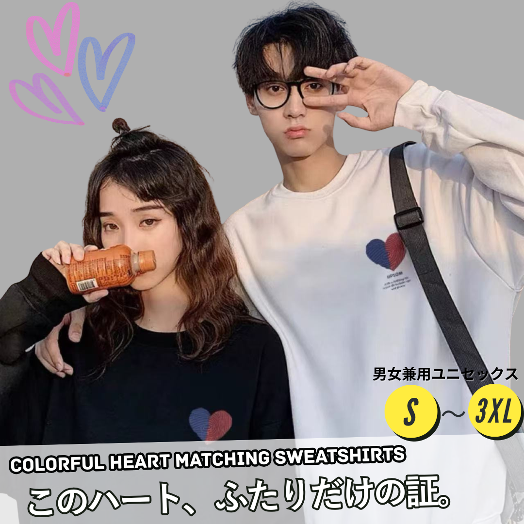 ペアルック カラフルハート イラストトレーナー【2点セット】