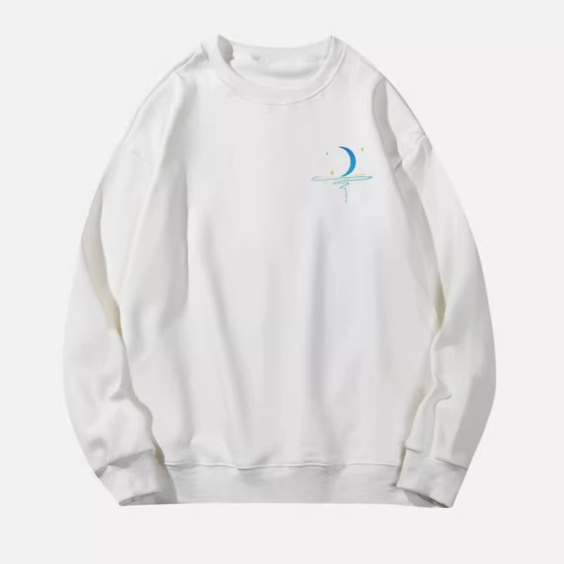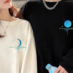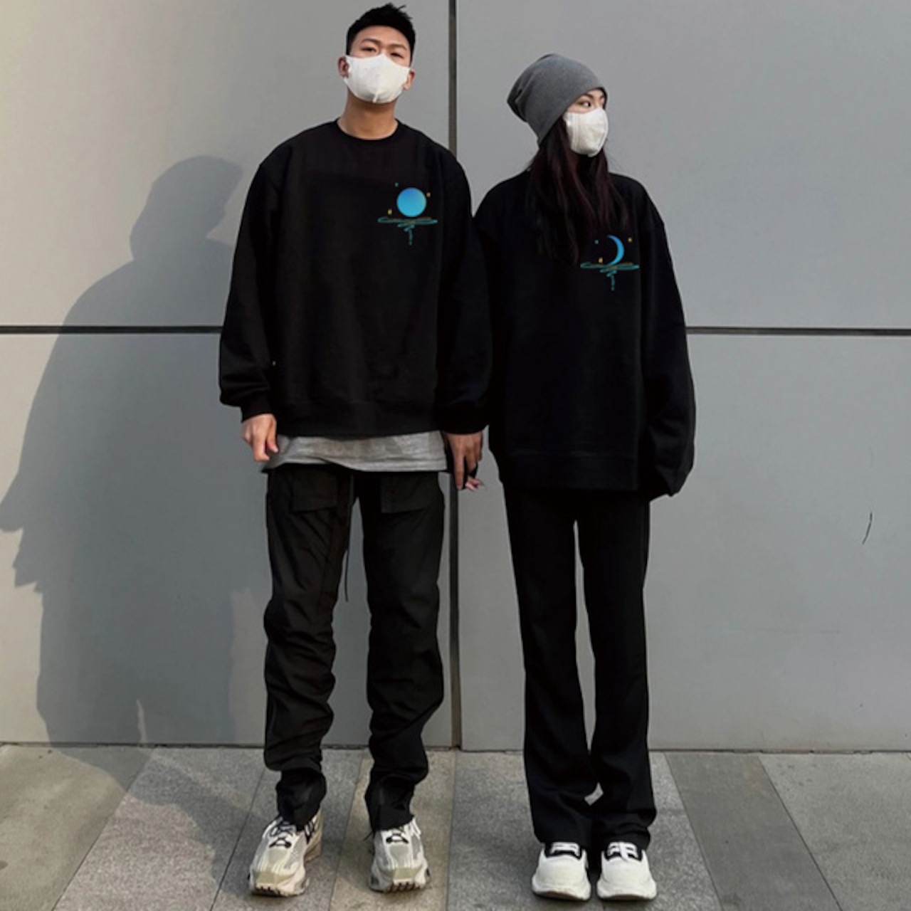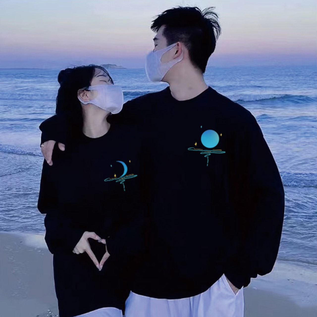 カップルペアルックのブルームーントレーナーは、ふたりのコーデをさりげなく格上げしてくれる洗練アイテムです。柔らかな着心地と今っぽいデザインが魅力で、カジュアルながらもスタイリッシュな雰囲気を楽しめます。 ユニセックスで着られるスウェットシャツなので、カップルで自然とリンクコーデが完成。お揃いで着るだけで親近感や特別な一体感が生まれ、ふたりの距離もぐっと近づきます。 シンプルながら存在感のあるデザインは、デートの日はもちろん、ちょっとしたお出かけやおうち時間にもぴったり。どんなシーンでも心地よくスタイルを楽しめる万能な一枚です。
