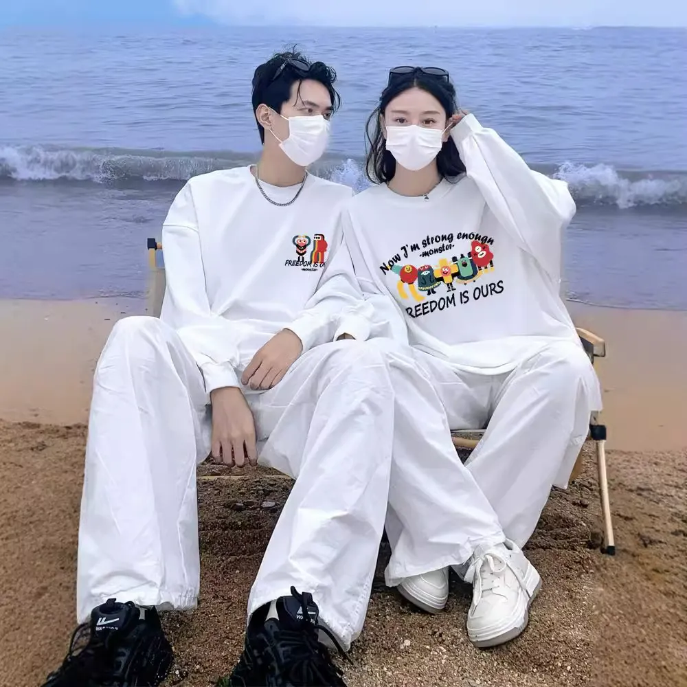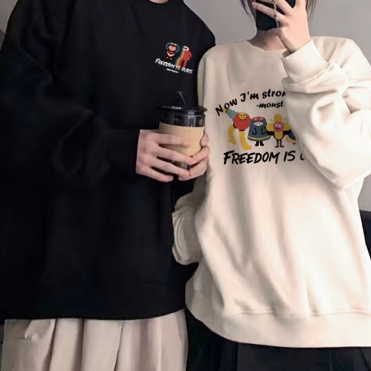 カップルペアルック 「FREEDOM MONSTERS」 グラフィックライントレーナー