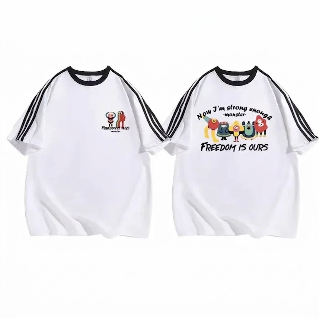 カップルペアルック 「FREEDOM MONSTERS」 グラフィックラインTシャツ